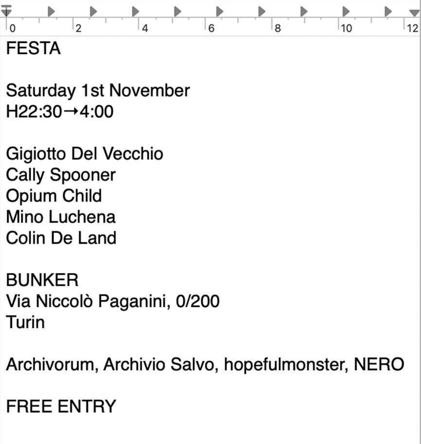 Goodvibes e friendeship, dicono. Con Gigiotto Del Vecchio, Cally Spooner, Opium Child, Mino Luchena, Colin De Land. Organizzato da Archivorum, Archivio Salvo, hopefulmonster, NERO.