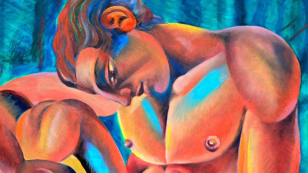 La prima sezione della mostra è un omaggio a Wilhelm von Gloeden, fotografo che, tra la fine dell’Ottocento e i primi del Novecento, ricreò scene arcadiche ispirate all’immaginario dell’antica Grecia, popolate da giovani siciliani nudi che interpretavano efebi e satiri in un’atmosfera bucolica di immobilità eterna. Quello di Gloeden era un mondo utopico nel quale fondare un modello di vita basato sulla bellezza e la ricerca del piacere dei sensi. Con la stessa missione, Massarenti riprende l’ideale di Gloeden ma utilizzando la pittura, insieme a un moderno taglio fotografico con il quale isola e inquadra porzioni di corpi e ritratti. Il risultato finale è una costellazione di piccoli dipinti che, nell’insieme, assumono l’impatto di fotogrammi cinematografici.