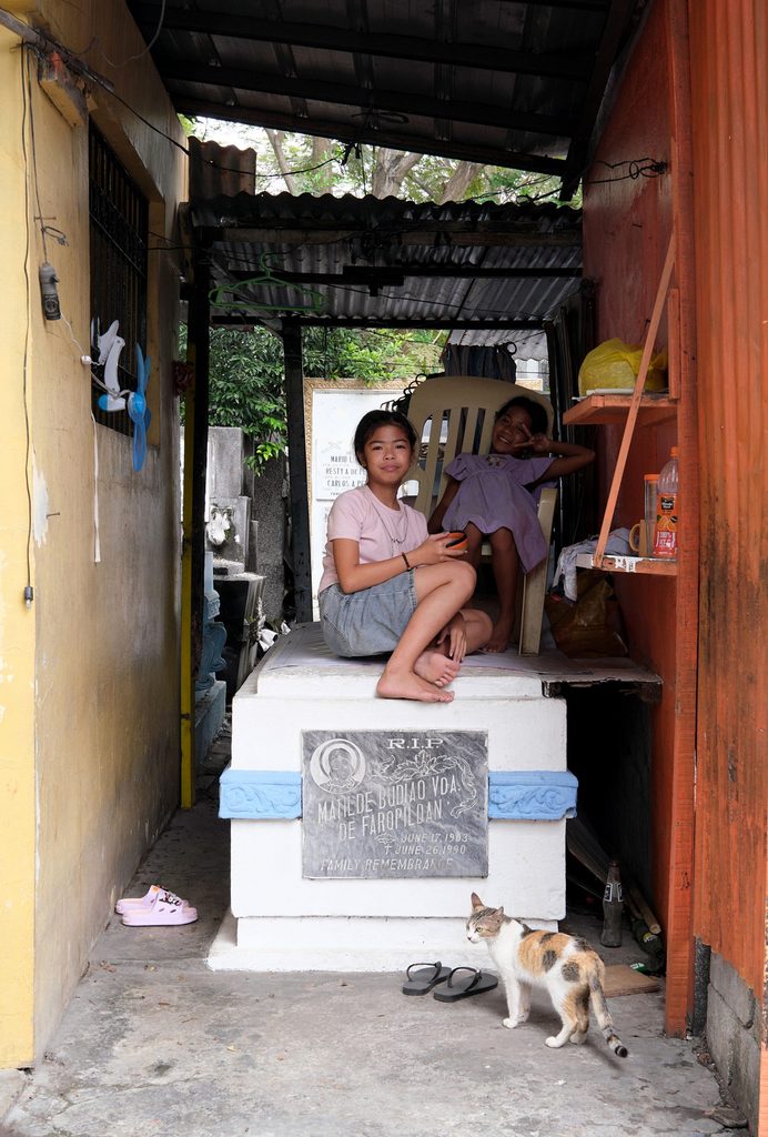 Nono solo abitazioni, ma anche lavoro: in tanti si sono reinventati custodi, guide che portano i visitatori alle tombe più belle o dei personaggi più noti; vendono fiori, bibite e snack e affittano i propri bagni a chi ha urgenza. Un’itera economia informale che coinvolge circa 6.000 persone solo nel cimitero di North Manila, che a sua volta ospita circa 1.000.000 di persone defunte. Resilienza in purezza, capace di riscrivere le regole del vivere urbano, ribaltando e contaminando luoghi, ruoli e funzioni.