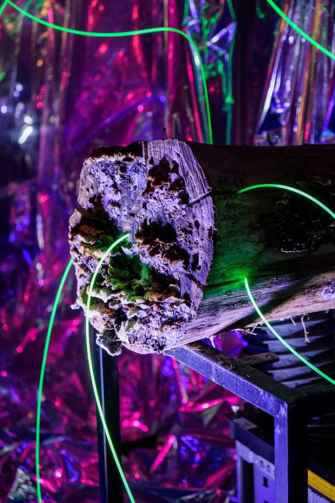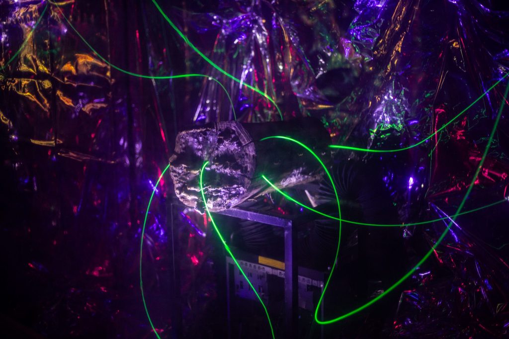 Per LMNL, Theia è un ambiente installativo generato a partire da un’articolata riflessione, influenzata anche dalla filosofia lunarpunk. Riflessione che è allo stesso tempo estetica, sociale e politica. Parla di presente e parla di futuro. A venire immaginata infatti, è una colonia che si è insediata stabilmente sulla superfice lunare e sopravvive grazie a tecnologie avanzate, in un sistema di convivenza bilanciato che garantisce il soddisfacimento di tutte le necessità. Gli abitanti di Theia possono così concentrarsi sul benessere e sulla crescita personale.