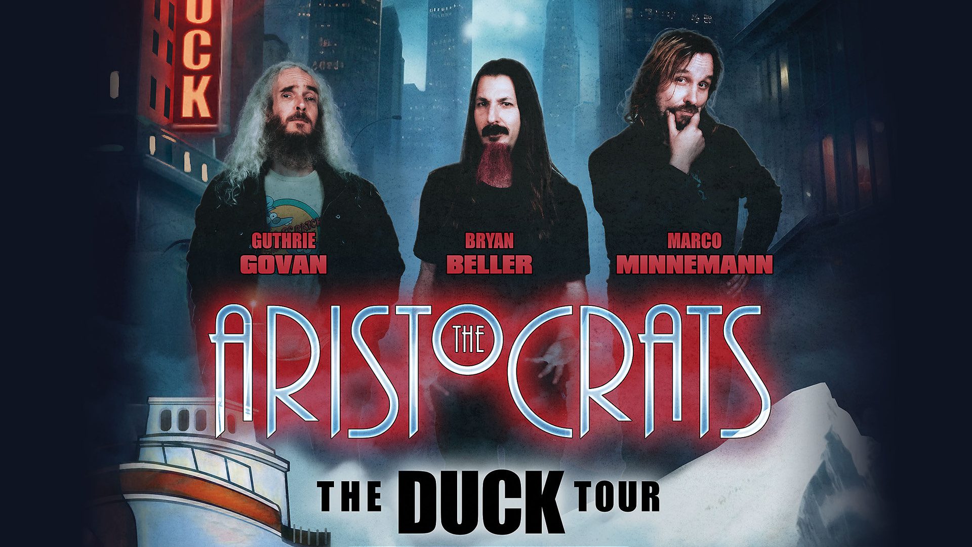 The Aristocrats sind zurück – lauter, wilder und brillanter als je zuvor. Mit ihrer neuen Tour feiern Guthrie Govan, Bryan Beller und Marco Minnemann im Frühjahr 2026 ihr jüngstes Studioalbum „Duck“ – ein Konzeptwerk voller absurder Geschichten, virtuoser Spielkunst und musikalischem Witz. Die drei Ausnahmemusiker vereinen Rock, Jazz, Metal und Zappa-inspirierte Satire zu einem elektrisierenden Live-Erlebnis. Im hierfür perfekten und wunderschönen Kaufleutensaal erwartet Sie eine explosive Show voller technischer Brillanz, spontaner Improvisation und dreister Spielfreude. Prog-Rock war nie unterhaltsamer.