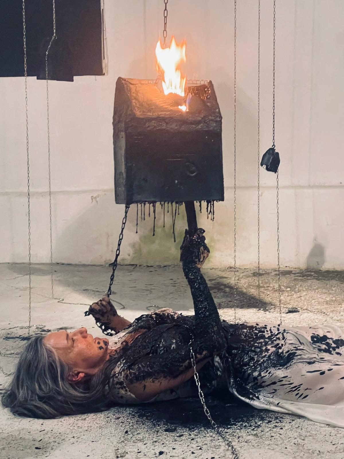 L’artista presenta una performance che, pur rimanendo nel tema delle rappresentazioni della figura femminile e dei ruoli sociali a lei assegnati, si apre alle catastrofi in cui queste dinamiche hanno trascinato le nostre società.