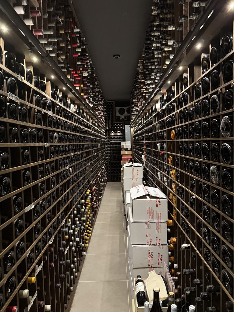 Scendo in cantina. È un caveau, non un deposito: 18 mila bottiglie ordinate meticolosamente. Umidità, silenzio, temperatura perfetta. La chiamano conservazione, ma in realtà è culto.