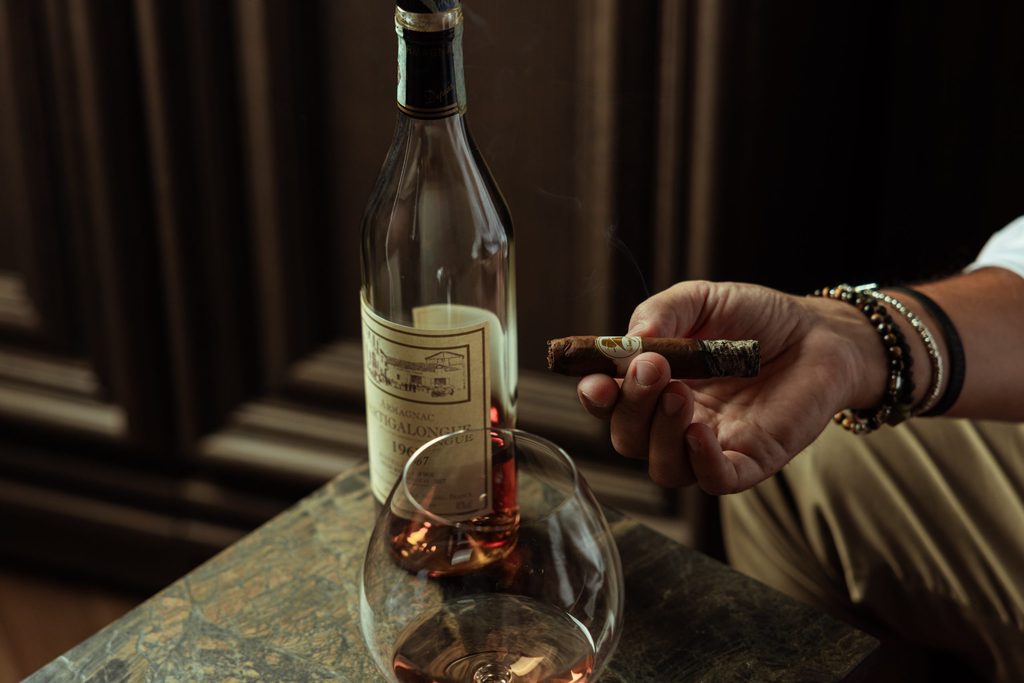 Se non è troppo tardi e non ti sei già sciolto sui divanetti, guarda in fondo alla sala: una porticina di vetro ti chiama. È la stanza più incredibile di tutte. Qui gli uomini e le donne serie vengono per degustare i loro sigari, in una Cigar Room che profuma di legno, cognac e lentezza. Giri il bicchiere in una mano, dall’altra tieni il tempo che finalmente si ferma.