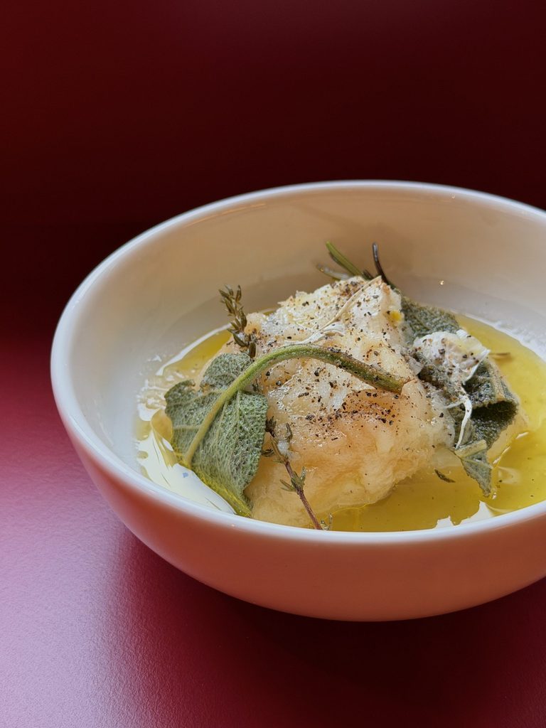 La brace fuma come un pensiero che non vuoi avere, il baccalà in carpione arriva, acido e strano, ti sbatte in bocca un sapore che non avevi messo in conto. Cannolicchi al burro affumicato che ti pungono, pollo chimichurri e zenzero che ti fanno drizzare le orecchie e ricordare qualcosa che non c’entra nulla. I bocconi sono piccoli, troppo piccoli, e ti costringono a pensare a chi stai mangiando accanto, come se fosse importante, e forse lo è.