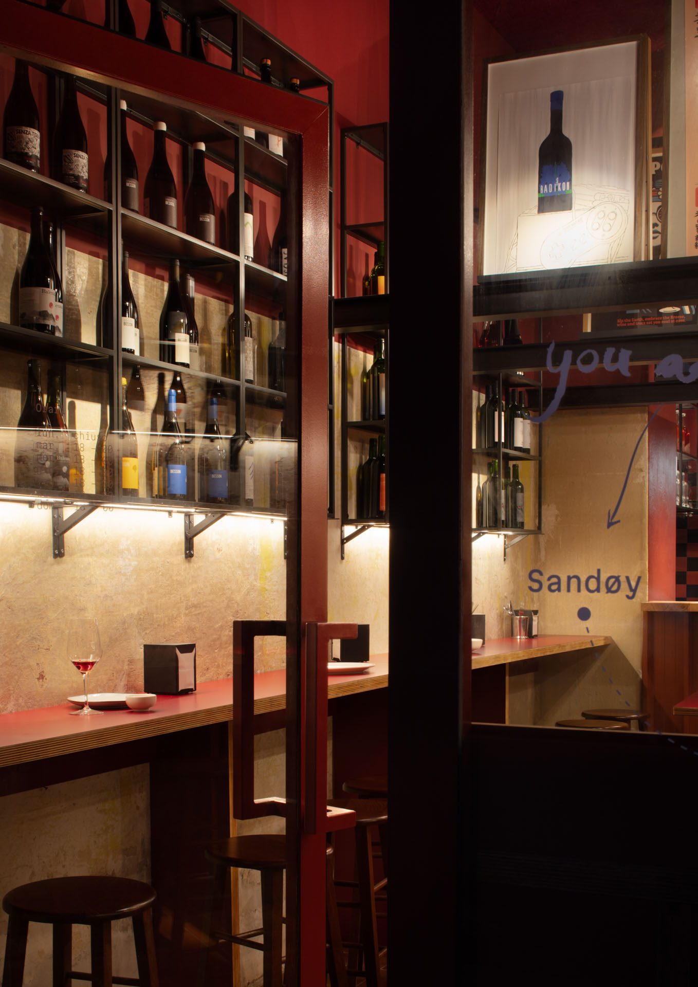 Sandøy. Isola di fianco a Røst. Naufragio, vento che ti sfiora il collo e ti ruba il cappello, mare che ti entra nelle scarpe, odore di stoccafisso e di sale secco. Entro e il porto è qui, tra bicchieri che tintinnano e tavoli alti, tra conversazioni che si intrecciano e nessuno che ti nota davvero. Quarantacinque metri quadri e già ti senti sperduto, curioso e stanco nello stesso tempo.