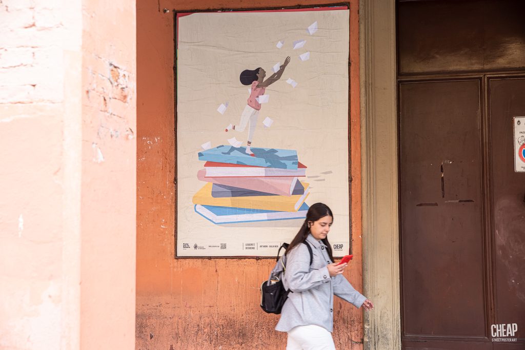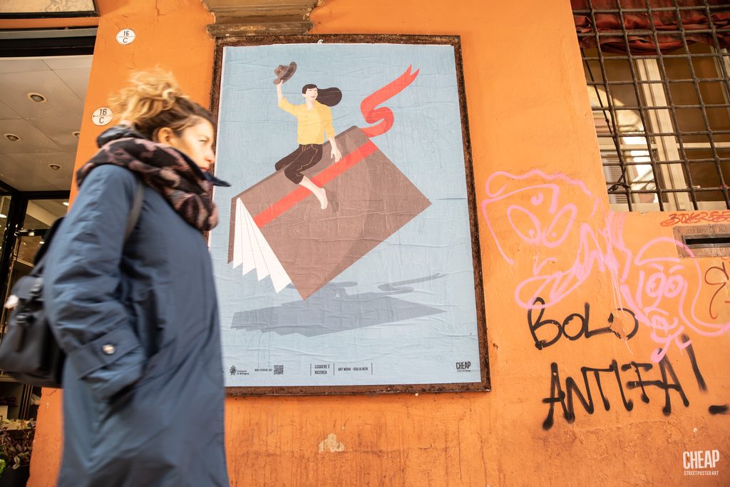 Sono solo tre delle immagini arrivate nelle strade di Bologna e diffuse a mezzo manifesto da CHEAP, il progetto di arte pubblica su poster che torna nello spazio pubblico con un nuovo intervento inedito, realizzato per Patto per la Lettura di Bologna, la rete coordinata dal Comune di Bologna /Settore Biblioteche e Welfare Culturale che promuove libri, attività, servizi, voci, progetti, luoghi, occasioni, incontri intorno alla lettura nel territorio.
