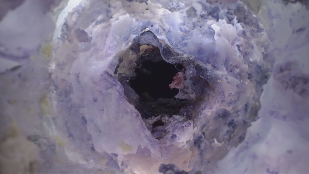Never Ground, titolo dell’edizione e dell’opera da cui ne prende il nome, è un’esplorazione di Natália Trejbalová. L’artista esplora geologie nascoste, lontane da coordinate spazio temporali definite, intrecciando ricerca scientifica e immaginazione speculativa. Ripercorrendo l’immaginario del romanzo di Jules Verne, Viaggio al centro della Terra, indaga come l’immersione in mondi ipogei possa ridefinire la percezione dell’ecosistema a cui apparteniamo e i limiti stessi dell’esistenza. Il suo studio resisterà oltre l’installazione video, attraverso una pubblicazione realizzata a quattro mani con la ricercatrice Stella Succi e distribuita da Mousse Publishing.