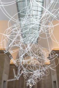 In mezzo ci sono Sheela Gowda (Bhadravati, Karnataka, India, 1957), Cerith Wyn Evans (Llanelli, Galles, Regno Unito, 1958), Chen Zhen (Shanghai, 1955 – Parigi, 2000), Daniel Steegmann Mangrané (Barcellona, 1977), Trisha Baga (Venice, Florida, USA, 1985) e Neïl Beloufa (Parigi, 1985). Artisti accomunati, come è stato messo in evidenza dallo stesso Todolí, dall’impossibilità di definire in modo preciso la loro appartenenza nazionale: nati in un posto da genitori di un altro paese, hanno poi stabilito la propria residenza in un terzo luogo o hanno abbracciato una vita nomadica. Il messaggio è chiaro, in linea con la posizione su cui si è schierato l’intero mondo dell’arte globale: l’arte è senza confini, e privilegia l’incontro tra le culture, anche se come sempre nasconde il fatto che la questione dell’attraversamento dei confini non ha praticamente rilievo per tutti quelli che a vario titolo sono riusciti a entrare a fare parte del ristrettissimo mondo dell’arte, ma è un problema di classe, e riguarda quindi un altro genere di soggetti.