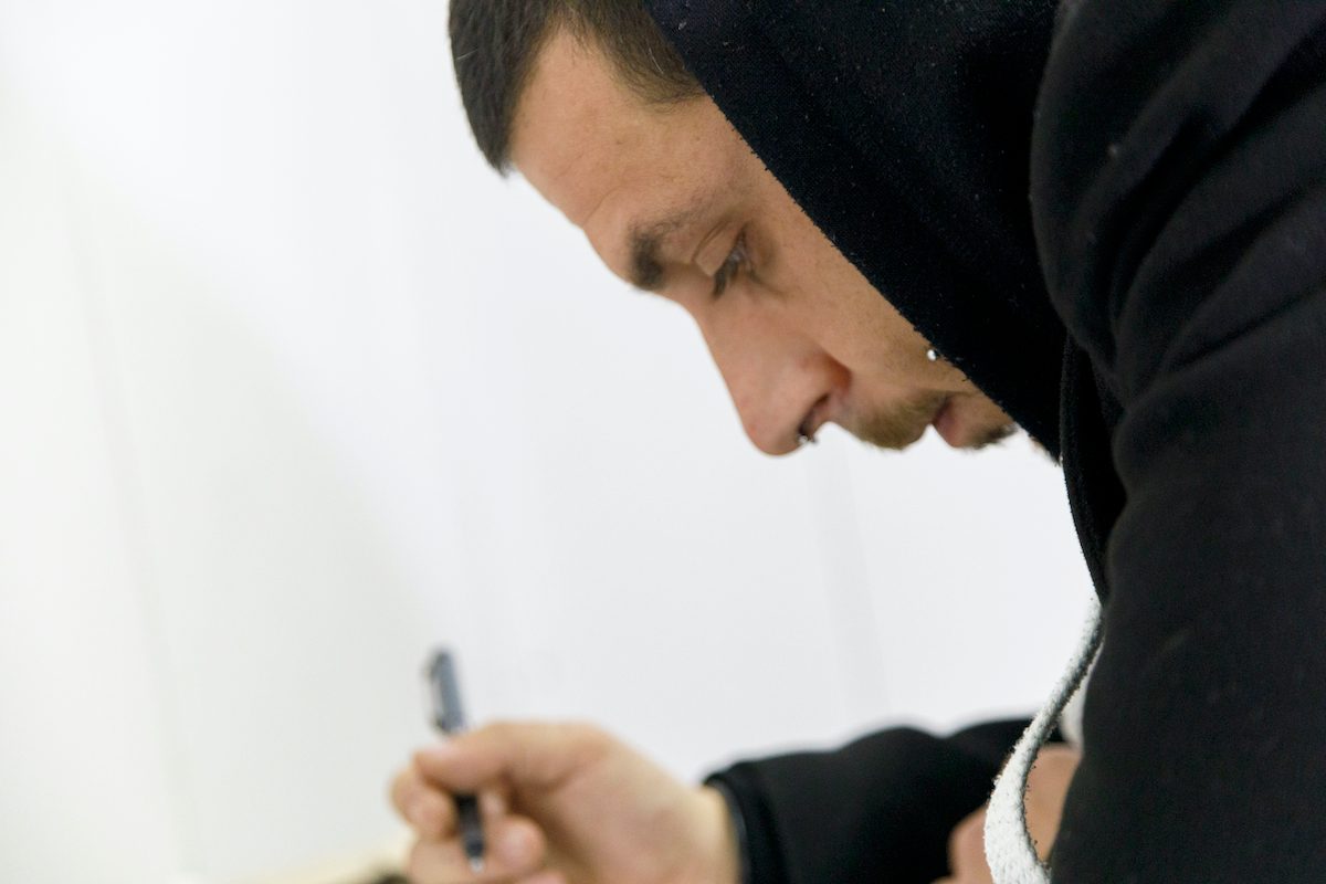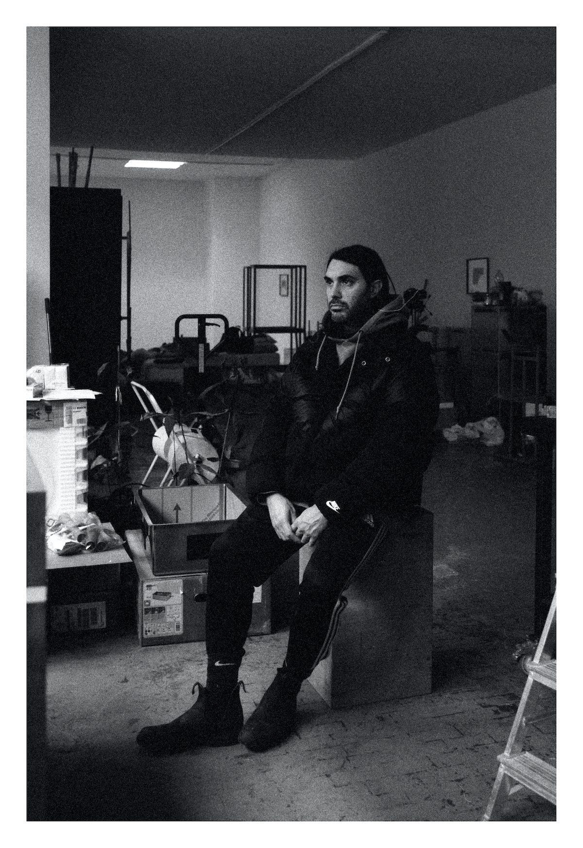 Proseguiamo verso la nostra ultima tappa giungendo al capolinea! Arriviamo a Comasina, nell’estremo nord di Milano dove, se siete stanchi, potete fare una tappa al McDonald’s e Crispy McBacon e patatine vi faranno tornare in forma! Proprio lì vicino, con il bus 729, in 11 minuti arrivato Via Nazario Sauro n. 4, a Cormano – che praticamente è Milano – e trovate lo studio dell’artista, nonché docente, Marco Bongiorni. Una pratica radicata nel disegno e nella pittura, attivata dall’irrazionalità del gesto, fuori ogni controllo, spesso estremizzato nella pratica dall’uso di protesi e costrizioni. Una ricerca che nasce, cresce e si sviluppa sulla pittura, e che ha come tema principale l’uomo, le sue emozioni e la box perché, dovete saperlo, Marco è un ex boxeur!