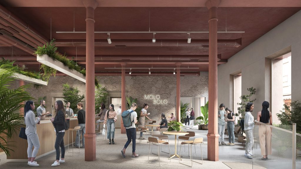 Parliamo di 5 piani fuori terra oltre ad un interrato e ad un sottotetto, per un totale di circa 10.800 mq di superficie lorda: „Un complesso CPB (Carbon Positive Building) – si legge – dove patrimonio e innovazione, residenti e comunità locale coesistono all’interno di un palazzo storico. Le attività che animano Molo Bolo sono organizzate intorno a una corte rinaturalizzata, mentre gli spazi pubblici al piano terra arricchiscono la vita del quartiere, contribuendo a una maggiore connessione con la comunità circostante“.