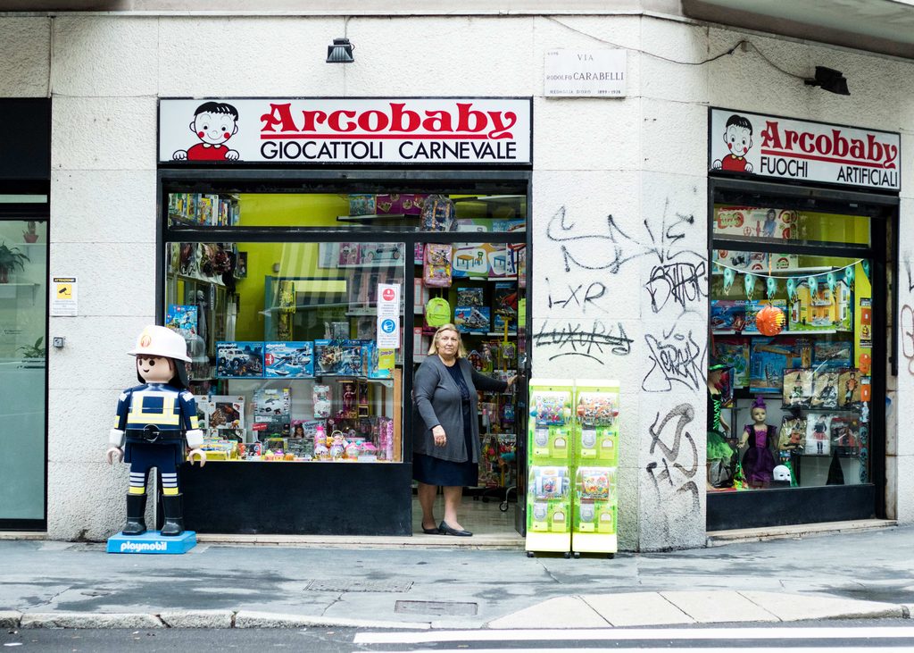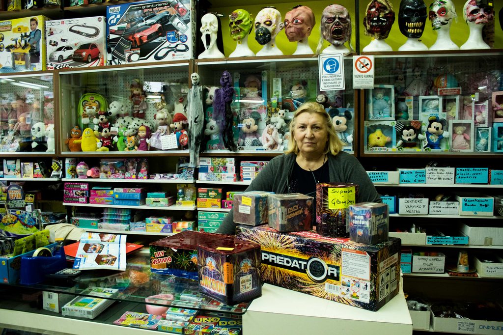 Il posto dove fare rifornimento è Arcobaby in via Carabelli, dal 1957 in quartiere, con giocattoli, fuochi d’artificio e tutto per il Carnevale. Dietro il bancone, a sfogliare il catalogo dei fuochi, c’è la proprietaria, Rosalia, che dispensa i segreti della pirotecnica legale indicando la stanza con porta blindata dove a dicembre c’è tutto l’arsenale di nitrato, zolfo e carbone di legna. Il materiale deve stare in sicurezza perché non può andare nelle mani sbagliate, né essere venduto ai minorenni. Le richieste in quartiere sono frequenti, per tutte le ricorrenze: compleanni, onomastici (si, onomastici!), lauree, fidanzamenti, diciottesimi, matrimoni e pure divorzi. Menzione speciale alle serenate sotto casa, come nei vicoli di Napoli anche nei cortili di Calvairate si organizzano sorprese alle promesse spose, nell’intimità dei cortili o dove meno te lo aspetti. La scelta dei prodotti è ampia, dalle semplici fontane, bengala, razzi e petardi alle “torte” (o batterie), cento lanci e sessanta secondi, per fantasmagorie a basso costo che volano alto.