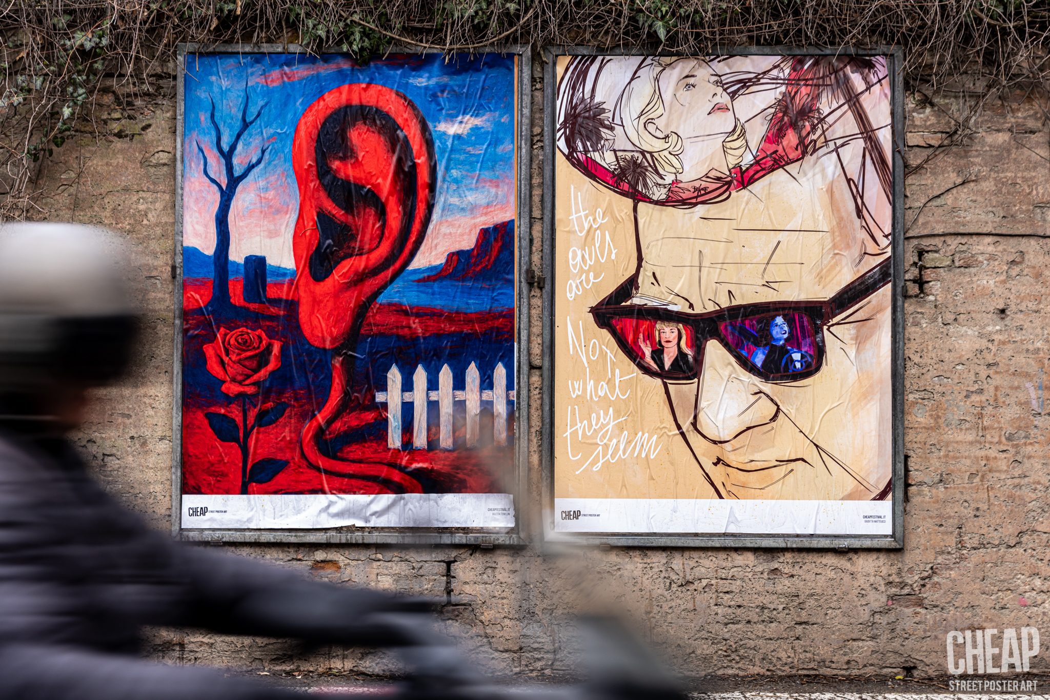 I manifesti, frutto di una call che ha coinvolto 14 Paesi, sono sparsi dal centro storico fino ai colli e attraversano linguaggi e tecniche: fumetto, illustrazione, fotografia, graphic design, tecniche miste. In strada prende forma un ritratto corale e frammentato di Lynch: il suo volto, i suoi personaggi, gli echi delle sue storie, i riverberi delle sue atmosfere cinematografiche.
