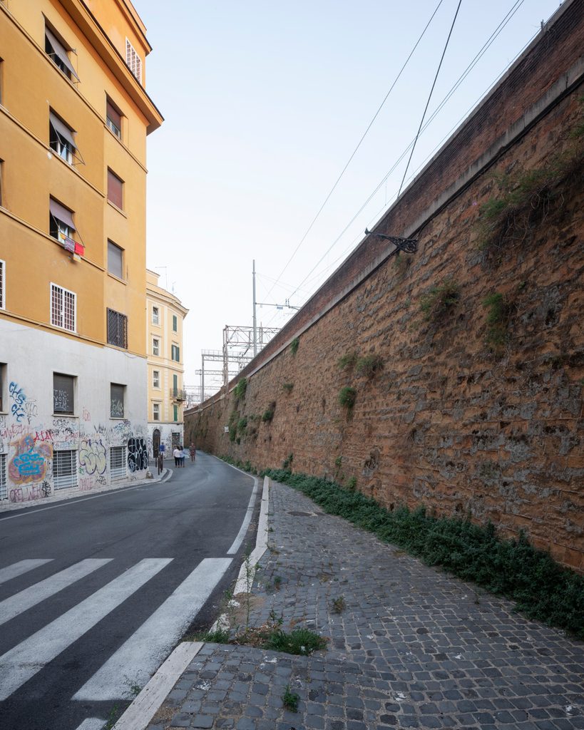 Questa natura di luogo in cui accedere è prepotentemente indotta dalla presenza di veri e propri “bordi” che cingono questo straordinario pezzo di città, quasi a enuclearlo. I “bordi”, che costituiscono una sorta di cinta muraria, sono limiti invalicabili come nel caso dello Scalo e di Termini, o invece aree non abitate, o abitate parzialmente, come nel caso del Verano e dell’Università: è come se San Lorenzo fosse una presenza protetta, all’interno della città, perché non scambia “osmoticamente” la propria urbanità, ma la preserva quasi fosse un carattere da proteggere. Questo conferisce al quartiere una capacità attrattiva forte, perché si mostra come modello di città con dimensioni controllate e definite, che nel tempo hanno creato un particolare sentimento di appartenenza presso gli abitanti e di seduzione per chi lo frequenta. Un aspetto del quartiere che si percepisce non si trova tanto nell’immagine degli edifici, anche se ce ne sono di interessanti, piuttosto nel loro essere legati strettamente a un collante urbano indefinibile, eppure forte e palpabile, dato proprio dai bordi, dai confini, e lo rendono una sorta di “borgo” dove entrare. Un borgo all’interno della città, con una propria storia, anche dolorosa, e una propria identità sociale e politica; e in questo “borgo”, in punta di piedi, siamo entrati con il nostro nuovo studio.