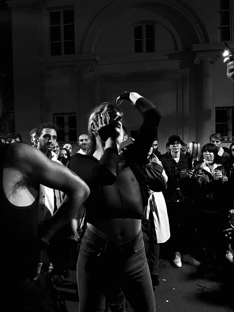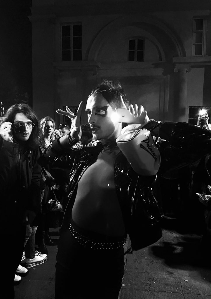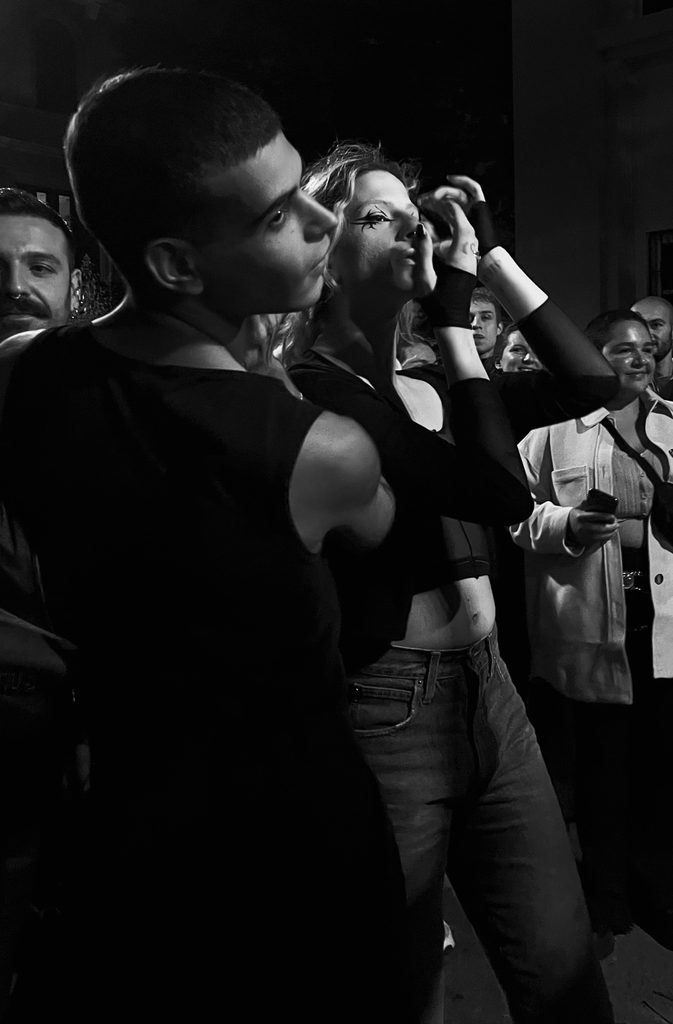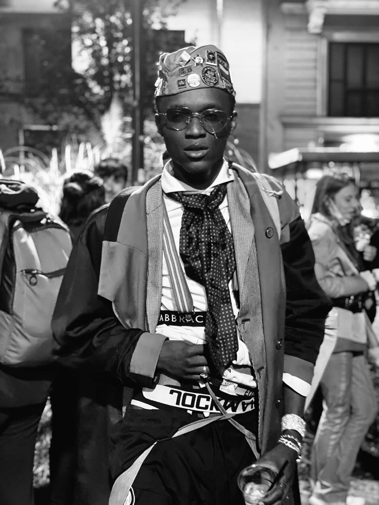 Anzitutto lui è un membro della prestigiosa Gorgeous House of Gucci di New York, un collettivo di persone queer nato nel 2019 dagli ex membri della House of Mizrahi, e insieme a tre amici ha dato vita a Moodha: un allenamento di qualche ora improvvisato in strada dove ragazzə di tutte le età mettono in mostra il loro “disagio” vestendolo al meglio come elemento caratterizzante. Solo a nominare la parola ballo il mio telefono diventa una vignetta pop art e dal microfono parte un “No Dario, il voguing non è un ballo ma un atto politico fatto attraverso il corpo”. Così, partendo dalle basi, capisco la differenza tra apprendere dei movimenti di danza disponibili a richiesta su youtube e partecipare a un movimento che porta con sé un significato profondo di famiglia e supporto reciproco.