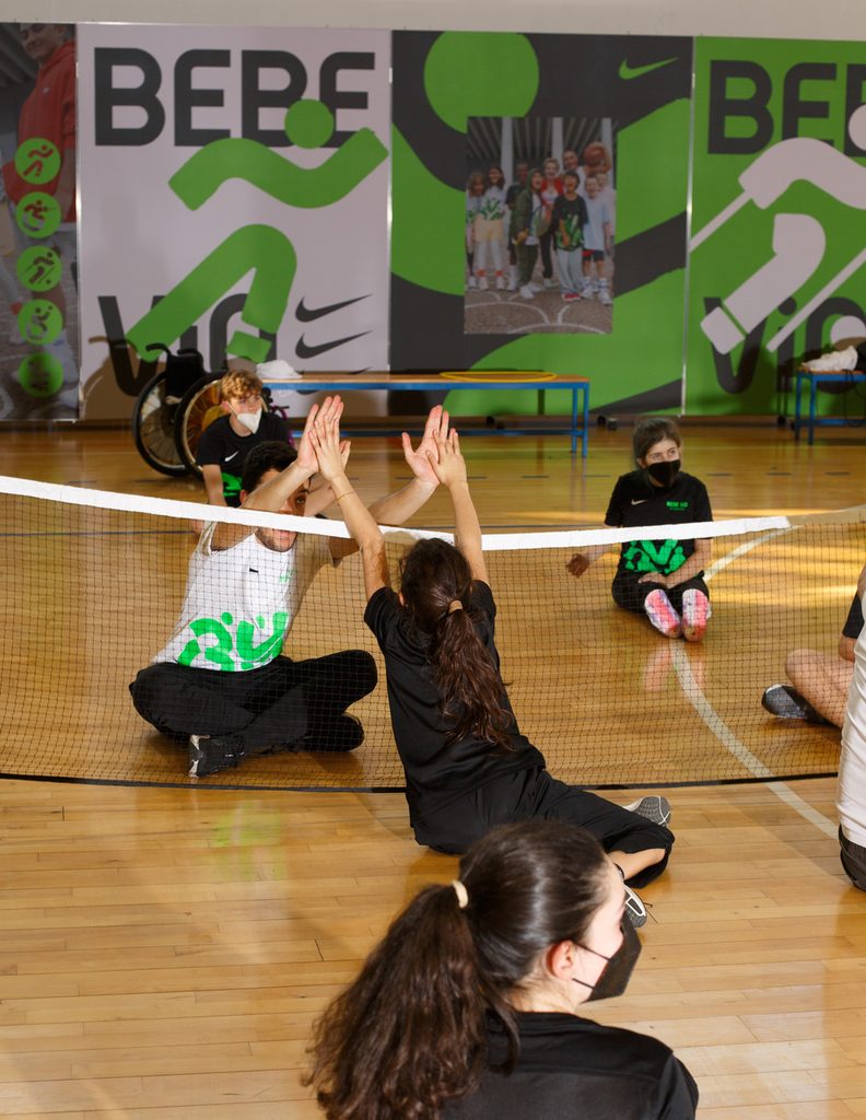 Nel caso della Bebe Vio Academy, poi, la gamma di rapporti è ancora più varia se si pensa che il gruppo di giovani atleti comprende ragazzi di età diverse, sia maschi che femmine, con disabilità e senza. In quest’ottica di grande inclusione, il sitting volley ha una particolarità: per praticarlo non servono ausili speciali, quindi è molto semplice da organizzare ed è adatto a tante categorie diverse di disabilità, oltre che alle persone non disabili. In pratica, è la pallavolo giocata stando seduti sul pavimento, con il campo più piccolo e con la rete più bassa. La regola fondamentale è che, al momento di toccare la palla, il giocatore deve mantenere il contatto col pavimento con una qualsiasi parte del busto (normalmente, almeno una natica). Inventato nei Paesi Bassi nel 1956, questo sport differisce dalla pallavolo tradizionale per davvero poche regole, che per lo più vengono dalla pallavolo classica ma sono state modificate negli anni dalla FIVB (Fédération Internationale de Volleyball). Per esempio nel sitting è ancora possibile murare e attaccare la battuta avversaria ed è mantenuta la cosiddetta “palla contesa”, abolita nell’indoor dal 2015.