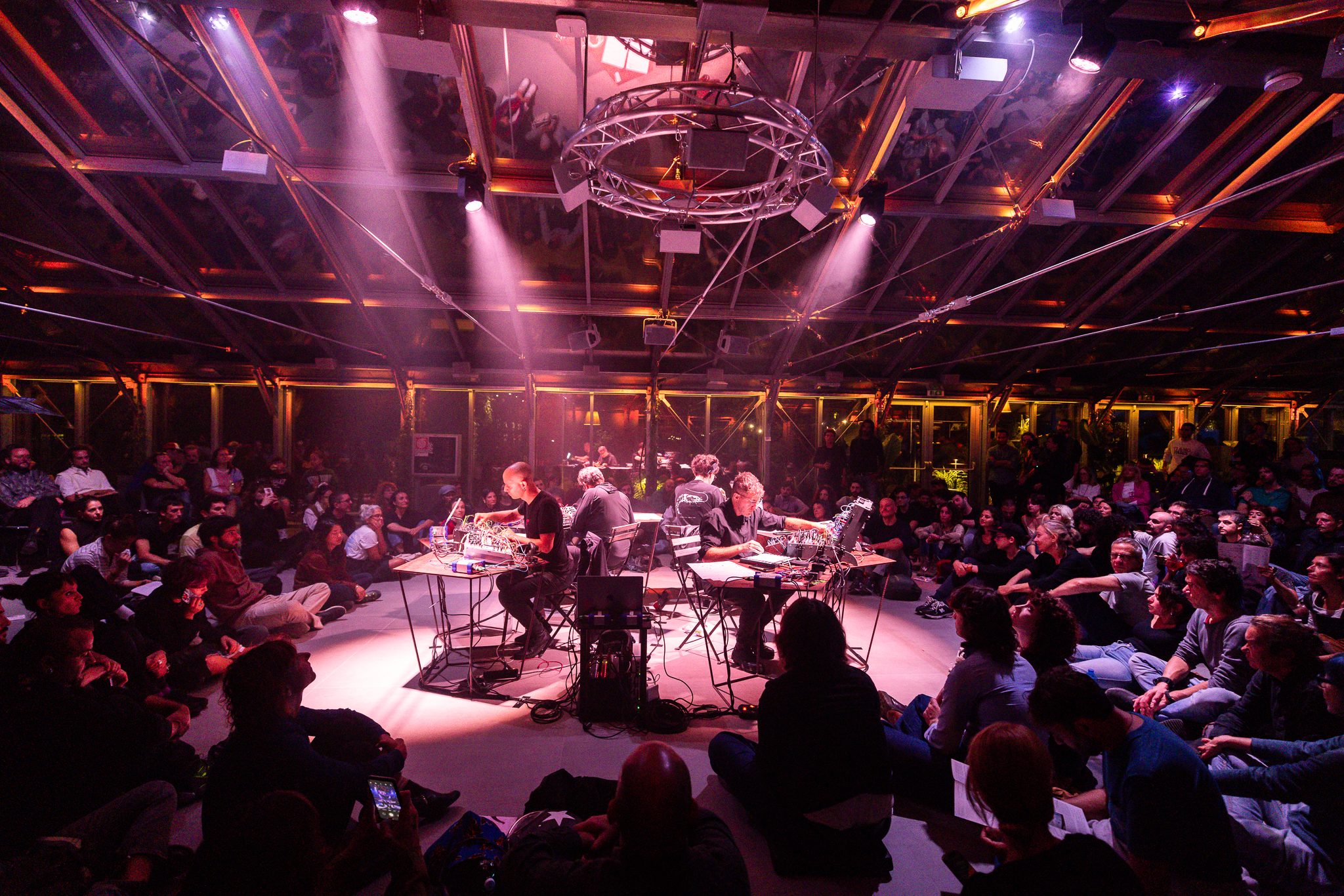 Dentro il suono: è così che ci si sente a contatto con l’incredibile impianto audio di serra madre. 40 diffusori d&b Audiotechnik disposti in configurazione surround e overhead, controllati da un motore di spazializzazione, che consentono di muovere e posizionare oggetti sonori virtuali come voci, suoni naturali e tracce musicali, generando la percezione iperrealistica di esserci dentro. Un‘architettura acustica che consente di sperimentare pratiche di ascolto collettivo come il neonato format Immersive listening dedicato alle esperienze di ascolto profondo e immersivo.