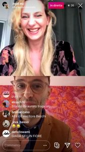La seconda ospite è stata Maria Luisa Frisa, rinomata critica, fashion-curator e direttore del Corso di laurea in Design della moda e Arti multimediali all’Università Iuav – in diretta dalla splendida laguna veneziana. Eravamo un po’ spaventati del gap-culturale degli ospiti; ma Maria Luisa ha rotto il ghiaccio commentando il cambio abiti di Borealo come “una grande performance”. Cerchio chiuso.