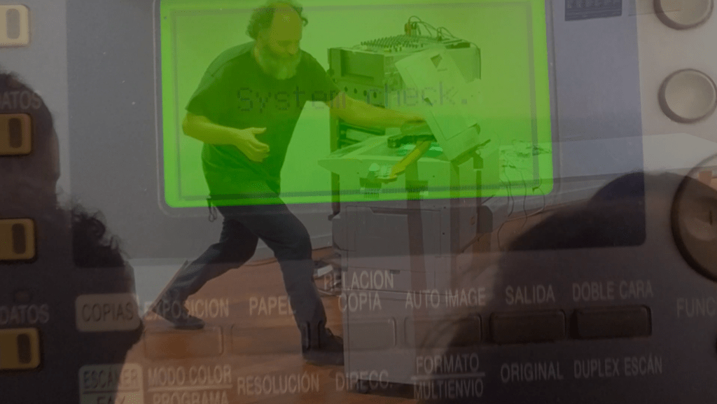 Venerdì 28 novembre è l’ingresso nel vortice. Da Atrium Durazzi (Via Rosolino Pilo 14) trovi la proiezione di The future… is just like you imagined, anteprima italiana del corto dell’artista slovena Sara Bezovšek, un collage frenetico di immaginari digitali e futuri distorti, insieme all’inaugurazione della sezione di rarità dell’Art Book Fair e della mostra The Matrix #2 dedicata a progetti risograph. Poco dopo ti sposti a piedi verso Spazio Maiocchi (Via Achille Maiocchi 5/7): qui Sergej Vutuc mette in cortocircuito una chitarra elettrica con delle fotocopiatrici, generando una fanzine live a partire dal suono, una performance che sembra un rituale meccanico, una jam tra elettricità e carta.