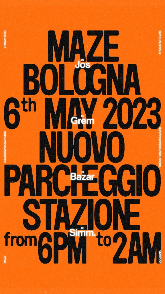 Parallelamente agli eventi al Nuovo Parcheggio, assieme al collettivo Massone Warehouse, Maze sta partecipando all’organizzazione di una rassegna cinematografica che avrà come oggetto l’approfondimento della dance music. Questo per rendere il nostro pubblico ancora più consapevole delle radici e di alcune sfumature riguardanti l’affascinante mondo della musica elettronica. Condivideremo più informazioni a riguardo nelle prossime settimane.