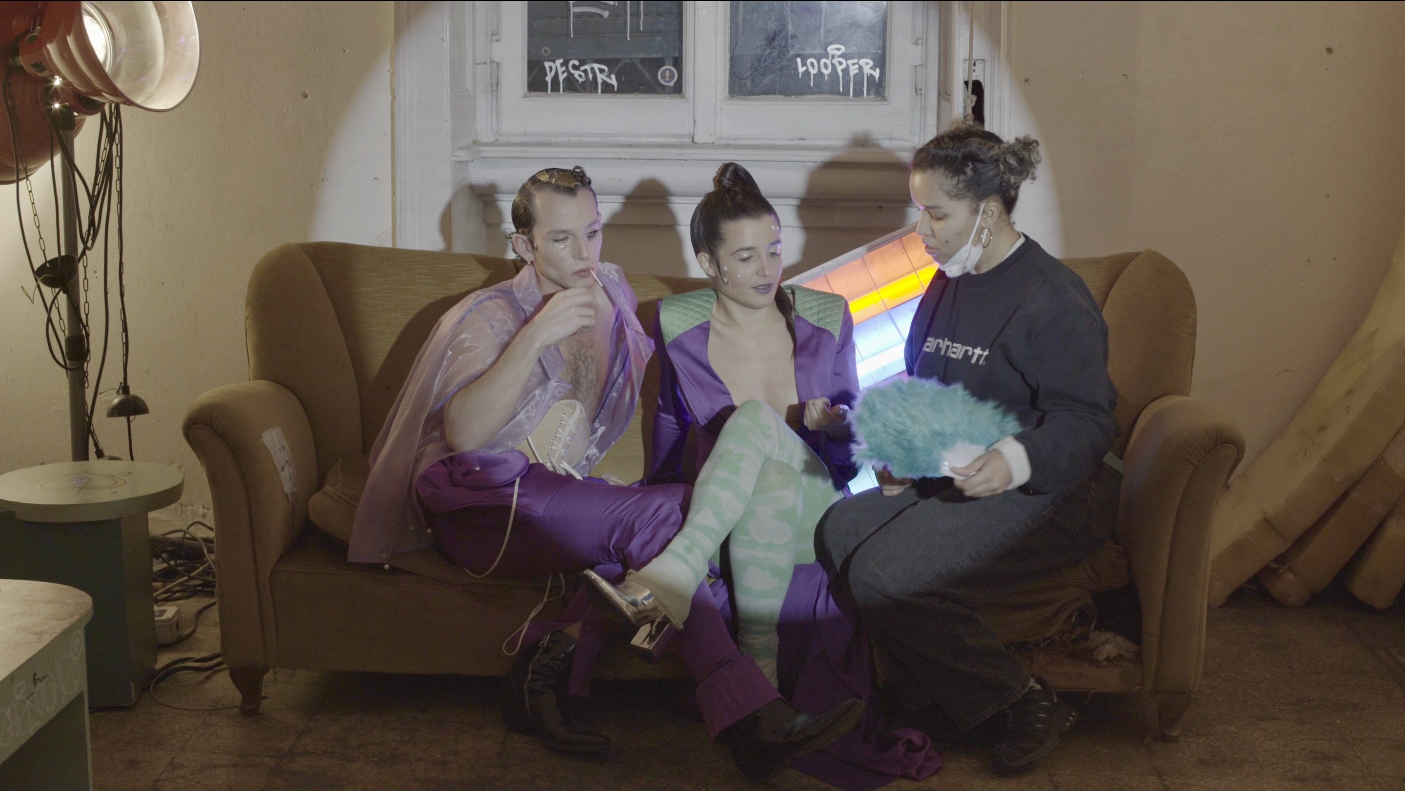 A questo video abbiamo lavorato in pochissimi e con quasi zero budget, ma Vittoria ed io siamo come sorelle che amano lavorare duro su sfide difficili quindi ce l’abbiamo messa tutta per farlo uscire meglio di quanto avessimo sognato. Non ce l’avremmo fatta senza l’aiuto e le competenze dei nostri amici che, in poco più di 10, hanno fatto il lavoro di 50 persone: Silvia Tonelli, assistente alla regia, Gabriele Macchi, alle luci, Maurizio Gazzola e Matteo Castiglioni, post-produttori del video (e anche musicisti pazzeschi degli Studio Murena), Yaismin Leite, stylist e MUAH, Greta Poli, coreografa e ballerina insieme a Federica Brianzoli, Arianna Puccio, art director insieme a me del video e del mio progetto visivo, e tutti i nostri santi amici che arrivavano a sorpresa ad aiutarci a turno come angeli custodi che arrivano nel momento del bisogno (Anthea, Paolone, Pietro, Clarita, Emma, Fedi, Chiara, Sandro…!). Inoltre il font del titolo è una creazione inedita, inaugurata da questo video, di Fantasia Type.