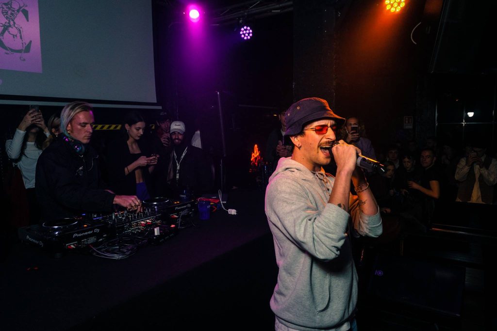 Come artista e performer non posso che dire Noyz Narcos. È di Roma ma vive a Milano da molto. E poi di milanese a Milano c’è solo Moratti, ndr. L’unico artista che senza chiedere nulla in cambio dopo 20 anni di carriera salta su un palco e fa rap senza pensare ai soldi, ma per il piacere di farlo. Della nuova Wave mi piacciono Tedua e Ketama perché i loro contenuti andranno oltre alla trap. Sono un grande fan di Giorgio di Salvo, il direttore creativo di United Standard. In ambito party posso dire che rispetto Buka e Le Cannibale, mi piace il loro percorso e le idee che propongono sia di guest (Buka) che di location (Le Cannibale) all’interno della loro serata. Apprezzo molto il lavoro di Toilet Paper, ma per salutarli devi comprarti anche tu il tappeto di Aladino. Tra gli studi grafici giovani collaboro con Burro Studio che hanno uno spirito positivo come il mio. Come dj hip hop il migliore è il mio amico Sgamo. Mi piace anche The Night Skinny. Adoro come comunica la sua musica. La sua direzione artistica e grafica e il suo merch.