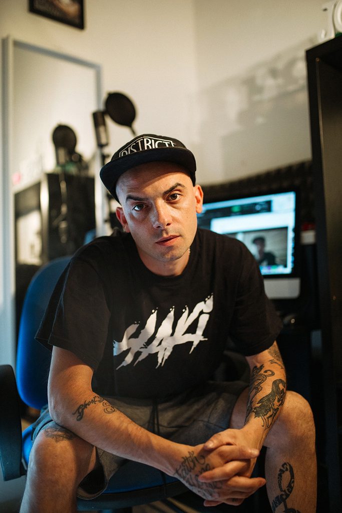 Innanzitutto adesso il mio lavoro da tatuatore lo svolgo a casa. Prima lavoravo fuori zona in un negozio, dopo il Covid siamo a casa. Quindi fanculo alle leggi, io tatuo a casa! Quando finisco di tatuare esco e la prima cosa che vorrei fare è bermi una birra. Però in realtà la mia giornata tipica in zona di una volta era: uscivo, beccavo i miei amici, due o tre sempre gli stessi, sotto casa, e facevamo la ronda per cercare qualche canna. Spendevamo tutto quello che avevamo in canne. Quando non c’erano più soldi andavamo dentro a rubare i fumetti per rivenderceli e comprare sempre da fumare. Questa era la giornata tipica. Poi è cambiata quando iniziavo a scendere negli studi, ma fumavo anche lì. Poi tornavamo a casa e fumavamo pure sulle scale. La priorità era fumare per noi ragazzi. A 25 anni ho smesso perché mi venivano gli attacchi di panico. Oggi magari faccio 2 tiri leggeri mentre mi bevo una cosa.