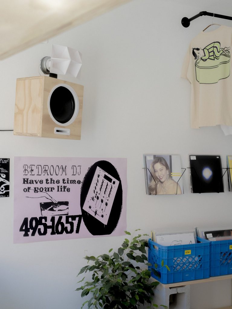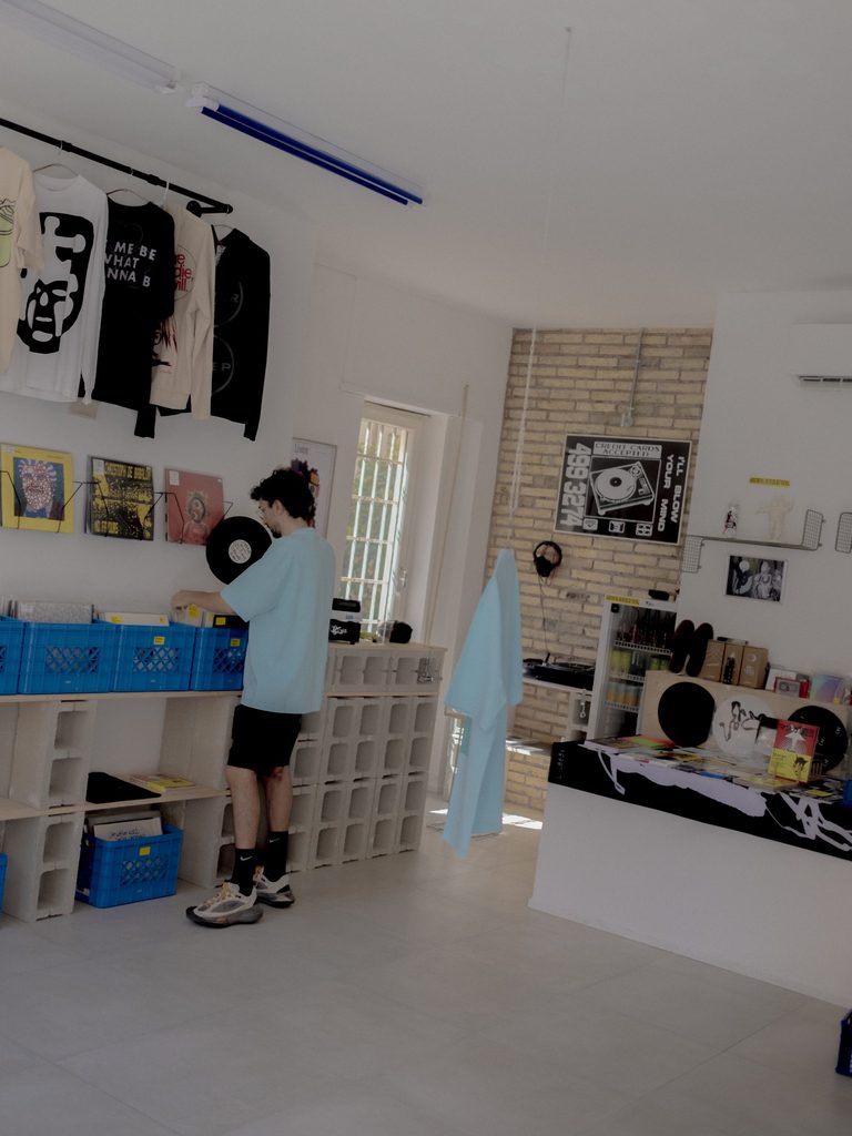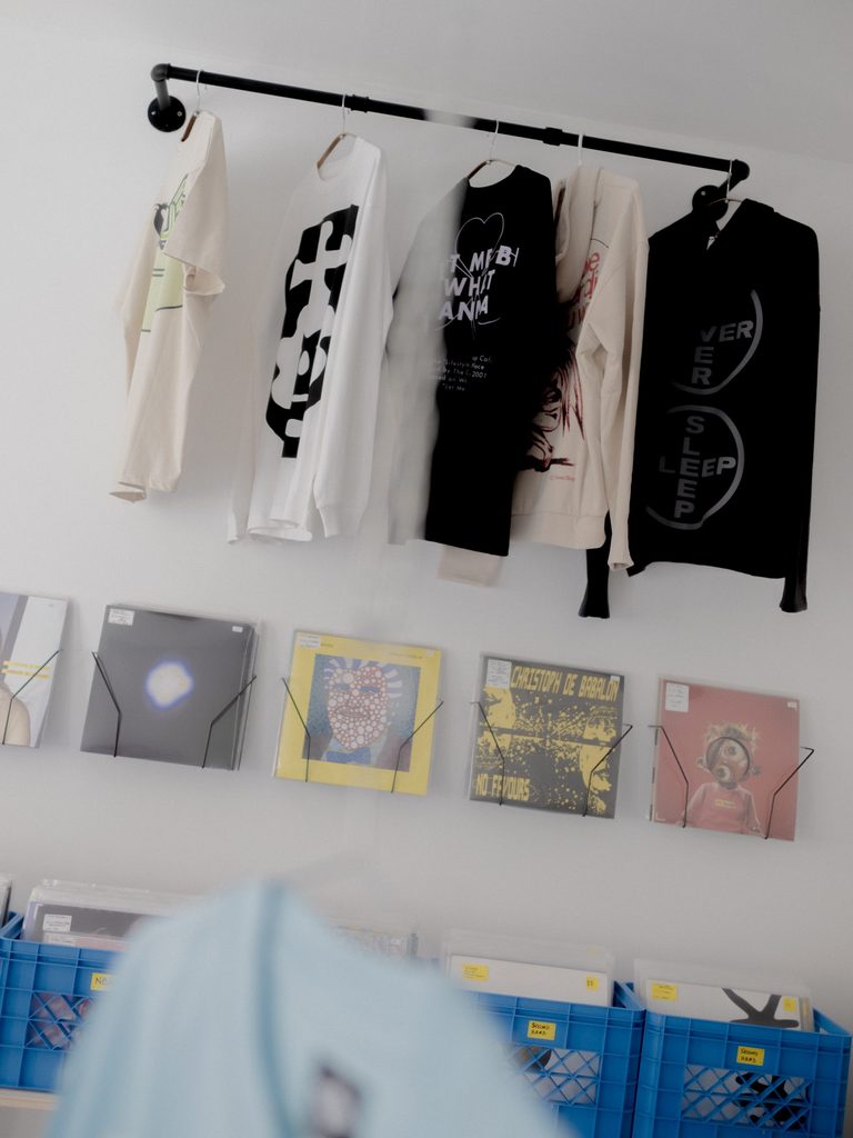 Potrei definire L863 come un negozio di dischi atipico. Uno spazio polivalente, la cui unica costante è la profonda connessione con la musica in tutto ciò che offre. Viviamo in un’epoca in cui una copertina non è meno importante della musica stessa e infatti non a caso brand come „The Trilogy Tapes“ o „Never Sleep“ hanno contribuito ad avvicinare sempre di più il mondo del club a quello della ricerca visiva, della moda e della street art. L863 è però anche uno spazio che fa cultura. Una volta un mio amico mi ha detto che un negozio di dischi è come una biblioteca — e per me è esattamente così. Un luogo dove avviene uno scambio di conoscenze, e quindi di cultura, tra persone ossessionate (in senso positivo) dalla stessa passione. Ecco perché ho sempre voluto creare uno spazio in cui fosse possibile ospitare live act, dj set, talk: per trasmettere questa voglia di condivisione. Il vinile, un libro o una maglia sono il prodotto tangibile di una cultura che ha bisogno di dire: “Io esisto. Io ci sono.” Quando acquisto una di queste tre cose, è esattamente questo quello che penso.