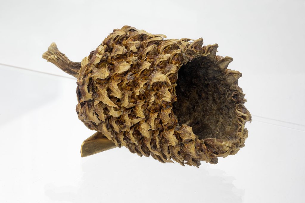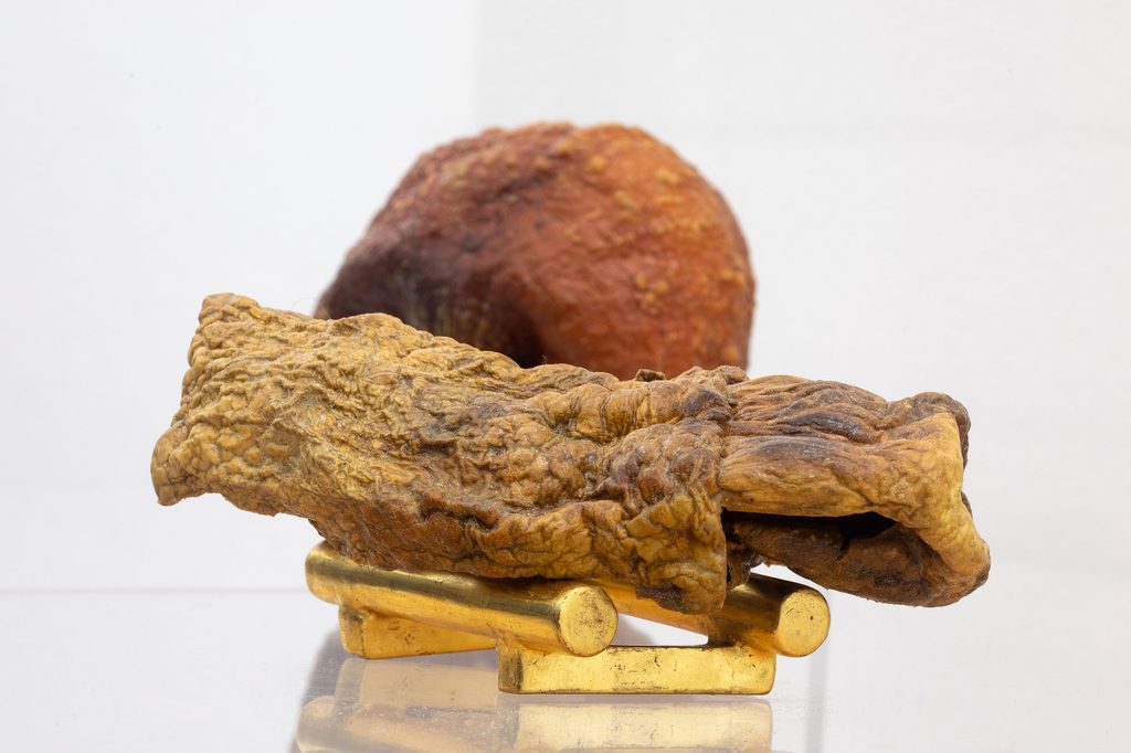 LT: Ai primi di marzo aprirò una mia nuova personale da Pinksummer. Si intitolerà In Bocca, e sarà fatta proprio di cibo. È una serie di lavori inediti, dei fossili prodotti da me, un’idea che mi piace molto, impronte fatte di materia e di tempo. Ci saranno delle ciotole che ho realizzato svuotando ed essiccando verdure… dalla zucca, al peperone, all’avocado… li “tassidermizzo”, trattandoli proprio come se fossero dei faraoni. È un processo piuttosto complicato, che le fa diventare dei contenitori di tempo. Un’altra serie che ci sarà sono delle grandi carte, che preferisco chiamare sculture piatte. Ho cominciato a realizzarle a Marsiglia con i nostri avanzi di cibo frullati, scrivendo sulle carte assieme all’acido degli agrumi.