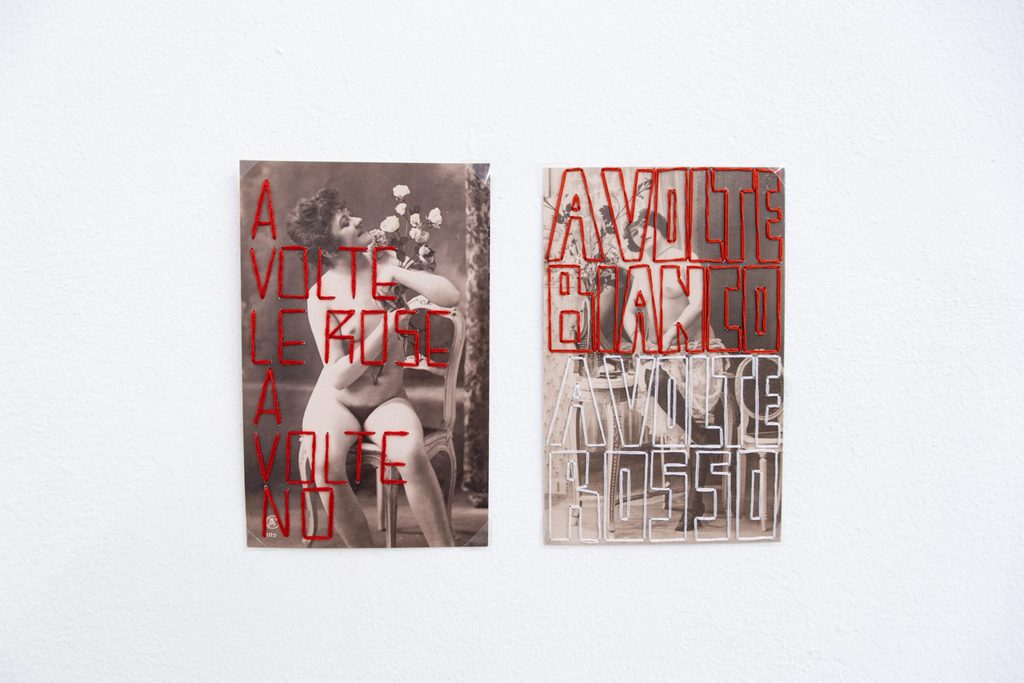 „Think in Pink“ è un ciclo di mostre a cadenza mensile in modalità „slideshow“, nato da un’idea di Andrea Acocella, uno dei curatori di bar.lina. La forza del progetto risiede nel rivolgersi a tuttə ə studentə – artistə e curatorə – delle accademie d’arte italiane, che troppo spesso lamentano la totale indifferenza del sistema dell’arte per i loro lavori, sperimentando in prima persona l’esclusione e lo stigma. In secondo luogo, è la dimostrazione concreta di come, invece, i discorsi legati al desiderio, al corpo, alla non conformità facciano parte del linguaggio artistico quotidiano della nuova (e futura) generazione di artistə e curatorə. Le persone sono chiamate a intervenire sulla parete rosa della nostra lounge room con un unico lavoro – pittorico, scultoreo a parete o video – che si possa legare, appunto, alla ricerca queer, transfemminista e non-normativa del panorama contemporaneo. La prima artista che ha partecipato è stata Gahel Zesi con un grande dittico dal titolo „Inseminazione traumatica“, un lavoro molto forte contro la cultura dello stupro. Fino al 5 giugno sarà invece il turno della video performance di Mattia Giuntini „As long as I’m beautiful I’m alive“, che usa la perfomatività drag come indagine identitaria.