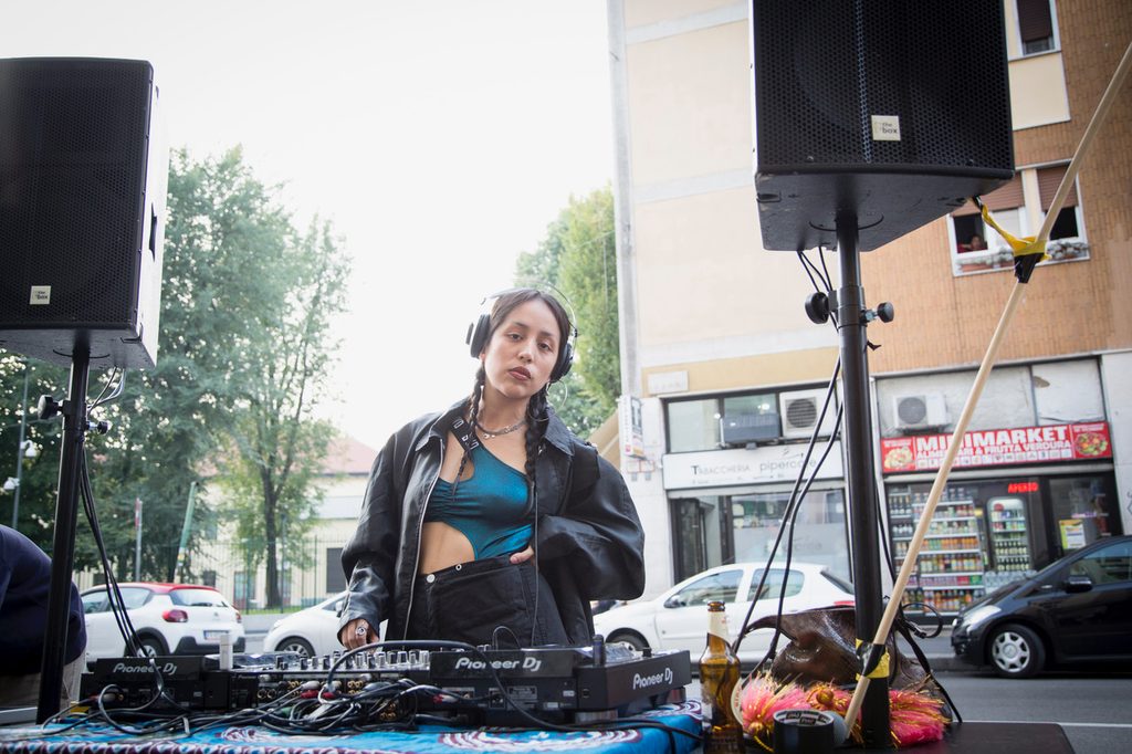 Il momento in cui sono arrivata nel quartiere coincideva con il pieno della sua gentrificazione, a fine 2016, ed era proprio un momento in cui stavo ragionando sul mio rapporto tra identità e musica. Mi stavo avvicinando alla musica urbana e al reggaeton, mi piaceva sentire Ozuna o Bad Bunny, che all’epoca stavano cominciando ad esplodere, sparati a palla in giro. Tra 2016 e 2017 ho viaggiato in Perù ed Ecuador: non tornavo in Sudamerica da 10 e passa anni, ed è stato tutto molto intenso. Al rientro a Milano, ho iniziato a riconoscermi in molto di quello che vedevo e sentivo nel quartiere. Mi sentivo identificata, e, in qualche modo parte di una comunità – anche se dire che la rappresento non è corretto, dato che siamo in tanti e tutti con esperienze super diverse. Stare qua a NoLo (non sono una fan di questo nome) in quel periodo è stato sicuramente importante per la crescita personale che ho avuto. Detto ciò, abbracciare le proprie radici senza riconoscere e questionare i processi che storicamente hanno tentato di eliminarle, significa cadere nello stesso oblio alla base dell’ipocrisia che è il multiculturalismo. E “NoLo” piace proprio perché “multiculturale”, “multietnico.”