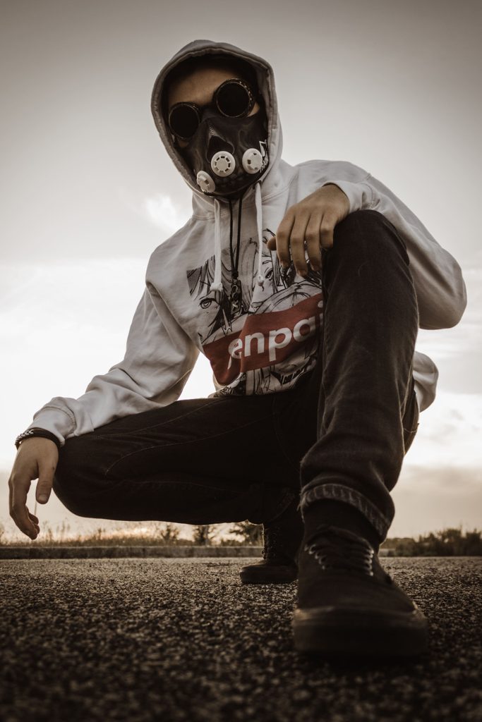 L’idea della maschera nasce per una necessità personale: quella di poter esprimere al meglio la mia forma artistica alternando suoni e mood diversi con maschere corrispondenti, riprendendo il concetto delle maschere di Pirandello.