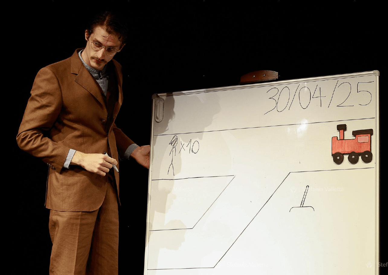 Un dialogo a due tra il figlio di un influente politico e il suo pedagogo. Il primo si è recentemente macchiato di alcuni crimini che mettono a repentaglio non solo l’immagine e la reputazione del padre, ma anche il pedagogo stesso in quanto accusato di averlo plagiato con nozioni filosofiche e soprattutto ideologico-politiche da lui professate. Scritto e diretto da Riccardo Cacace.