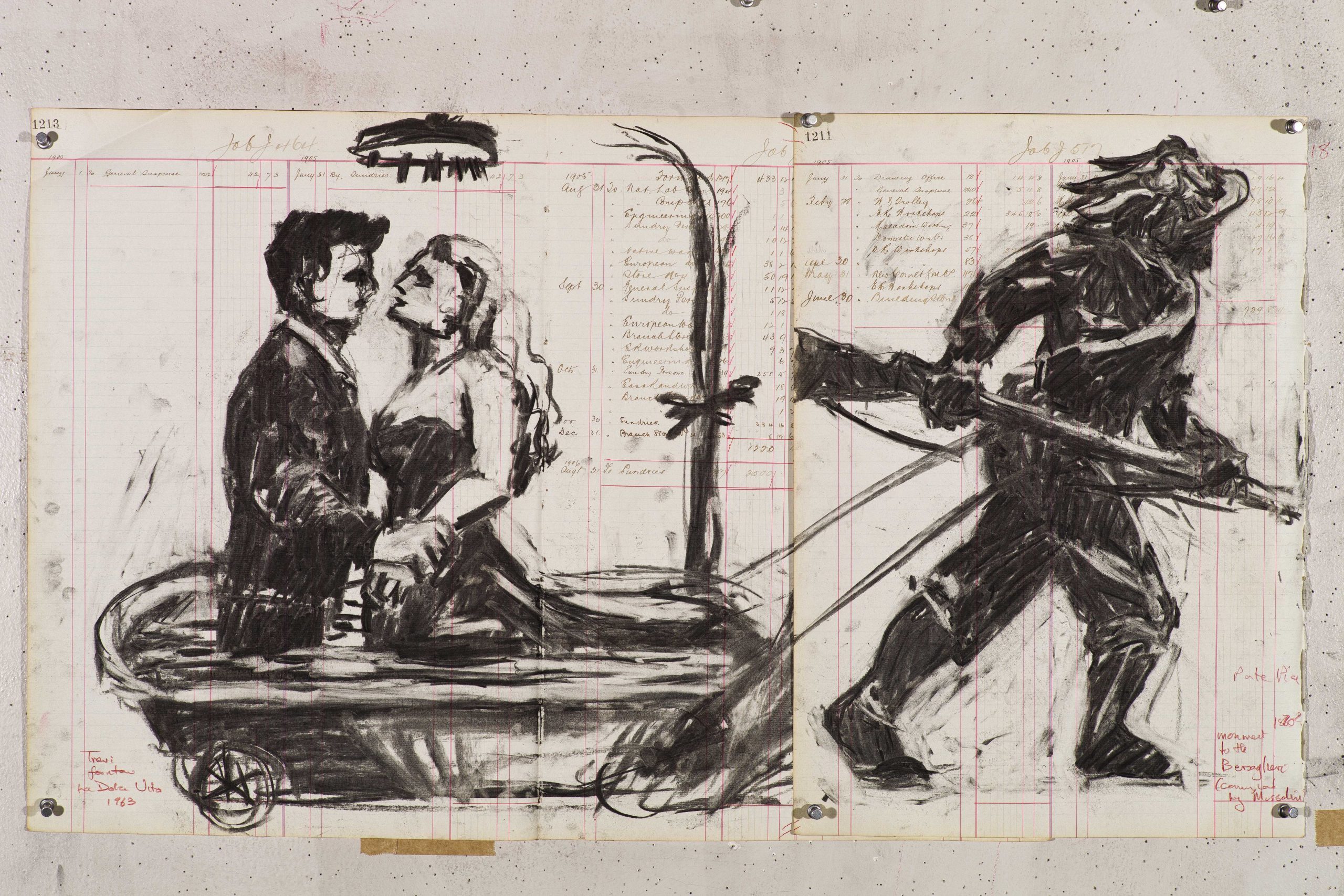 William Kentridge torna a interrogare la storia con un’esperienza immersiva di immagini e suoni: un cine-concerto in un prologo (“Breathe Dissolve Return”) e due parti (“Kaboom”, “Triumphs and Laments”), con le musiche originali di Philip Miller. Concerto per video, due soprani, tenore, basso, pianoforte, clarinetto, viola, fisarmonica, kora e percussioni.