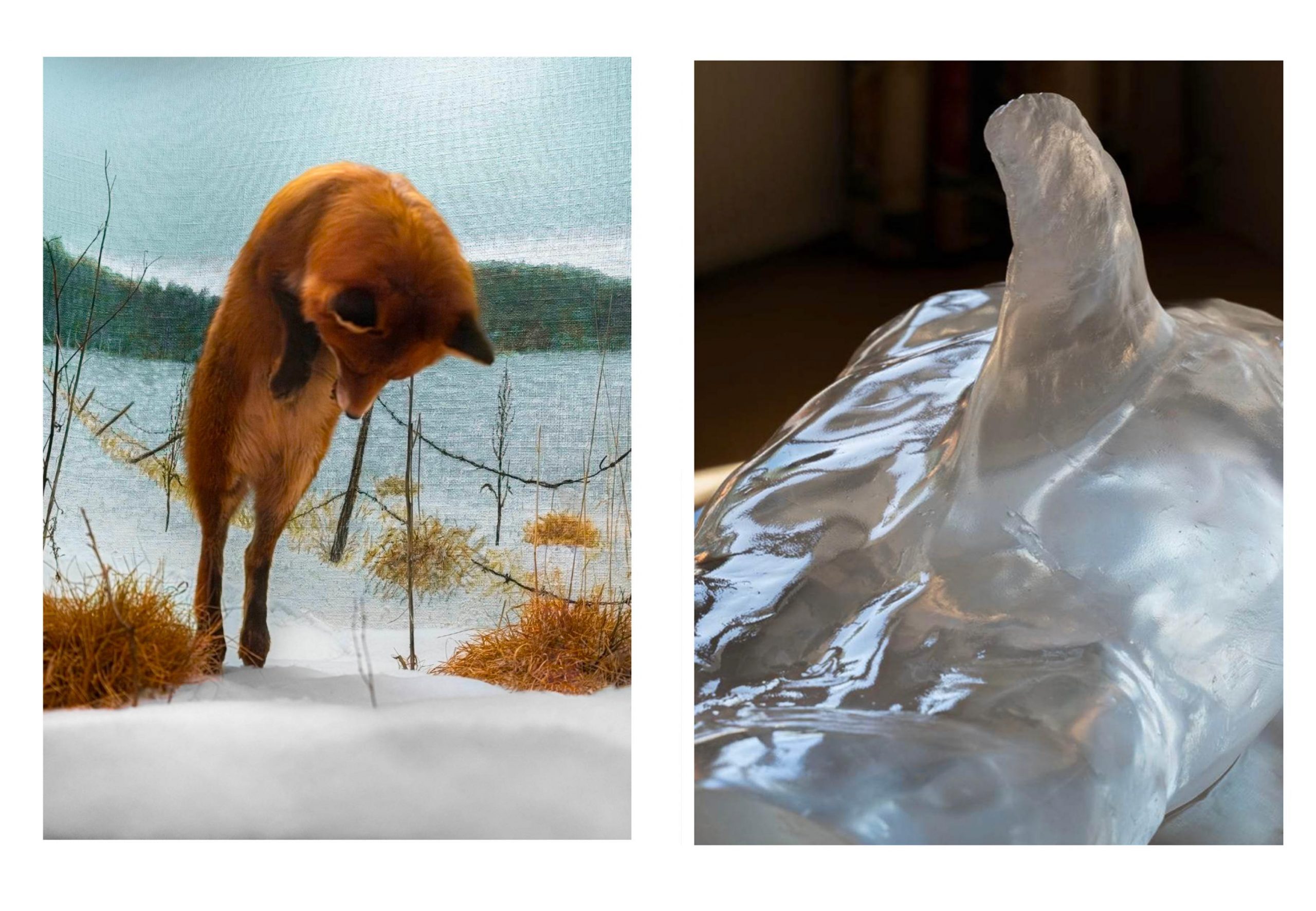 L’ingresso offre una prima occasione di confronto sullo stesso campo: la fotografia. Le figure ritratte da Gajani e Amatruda si misurano e si differenziano su più fronti, dalla scelta del medium al racconto politico che le fisicità narrate esprimono. Le fotografie si relazionano ad un archivio scultoreo, fotografico e illustrativo creato da Amatruda – frammenti raccolti e stratificati che permettono all’autrice di speculare sull’evoluzione umana e animale.