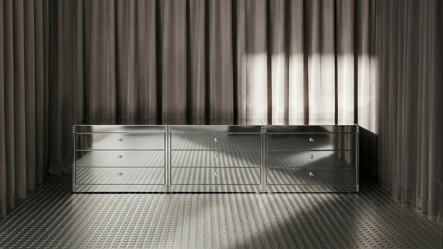Fondato a Milano da Delfino Sisto Legnani, Nicolò Ornaghi e Francesco Zorzi, NM3 lavora tra interni, prodotti e arredi custom con un approccio che sembra avere un’opinione molto precisa su quasi tutto: forma, funzione, materia e inutilità del superfluo. L’acciaio inox è il loro materiale d’elezione, trattato senza indulgenze decorative attraverso taglio laser, assemblaggio a secco e finiture grezze. Il risultato è un linguaggio asciutto, rigoroso e coerente, dove anche la minima variazione di superficie sembra avere più autocontrollo di molte persone.