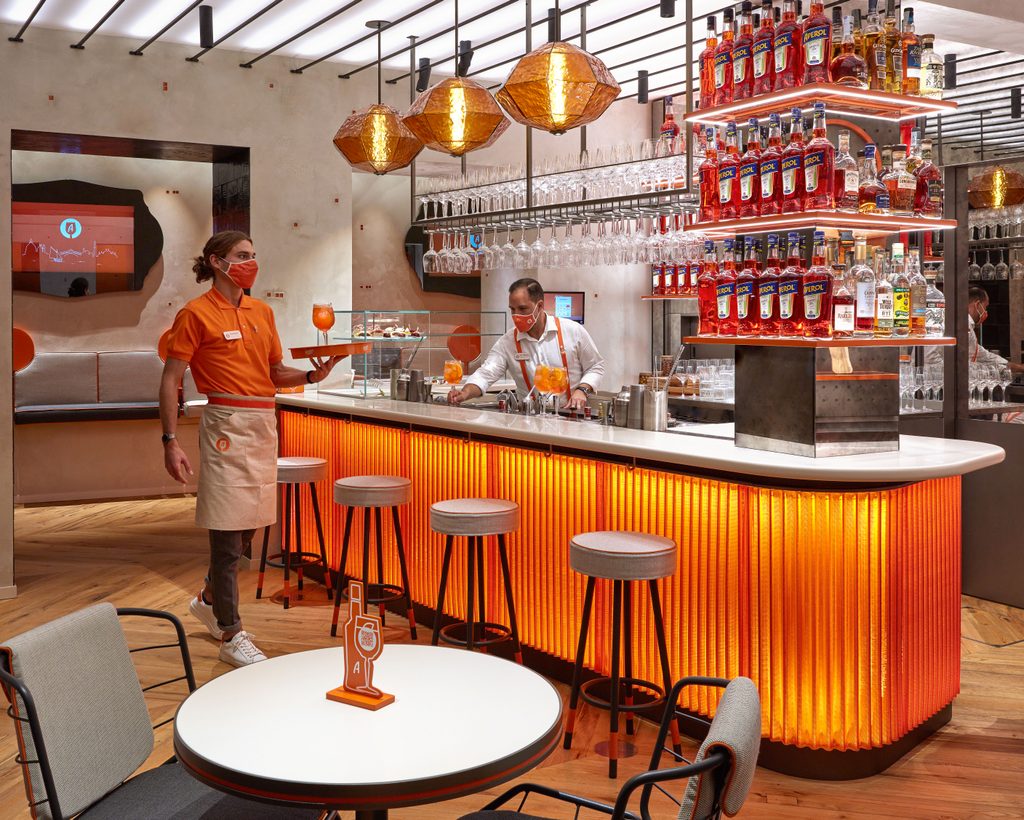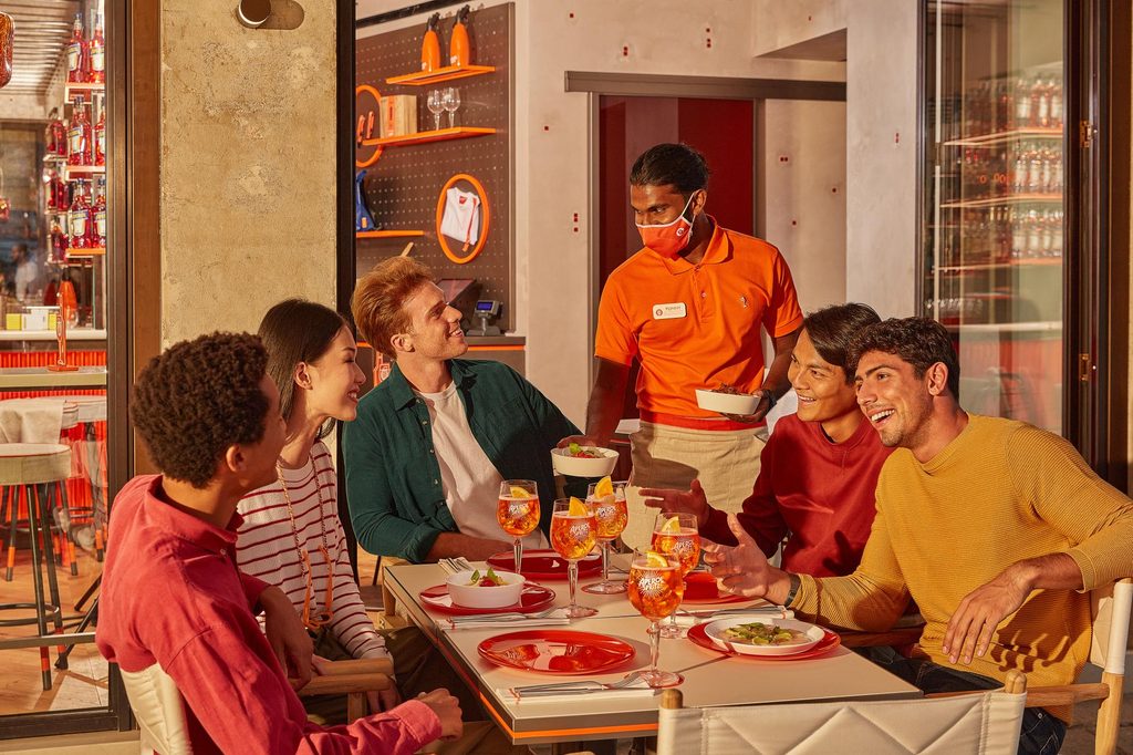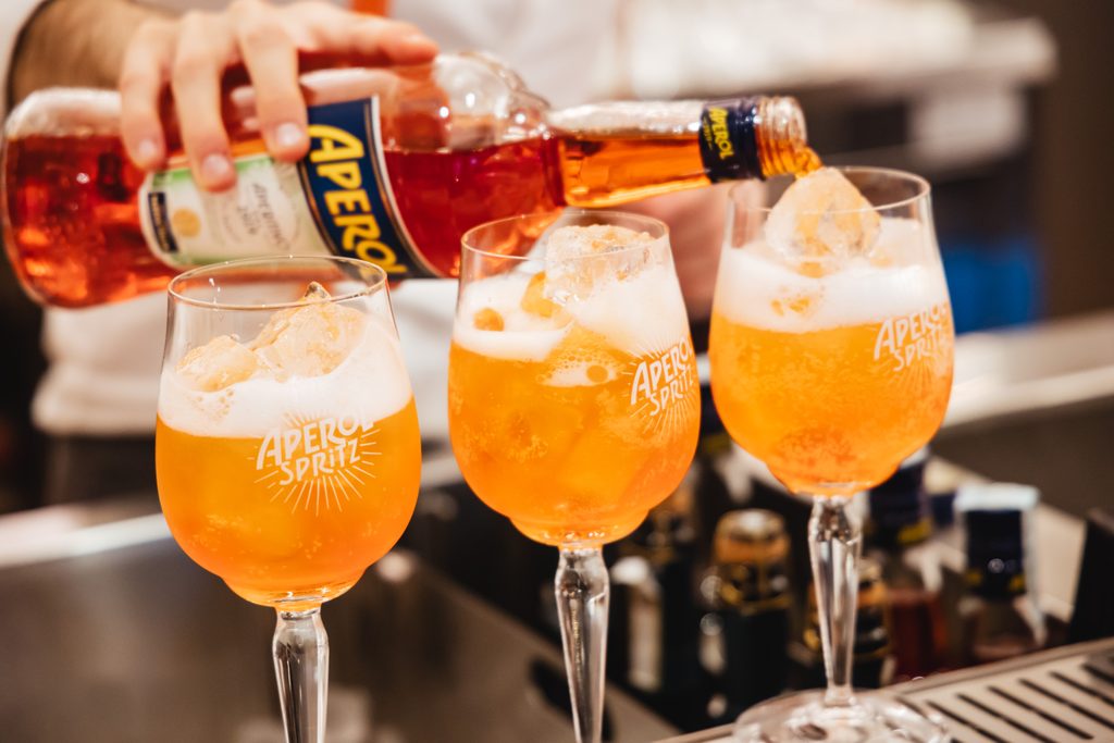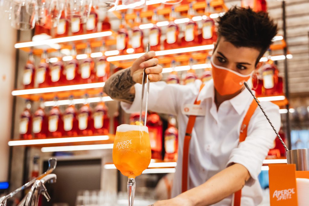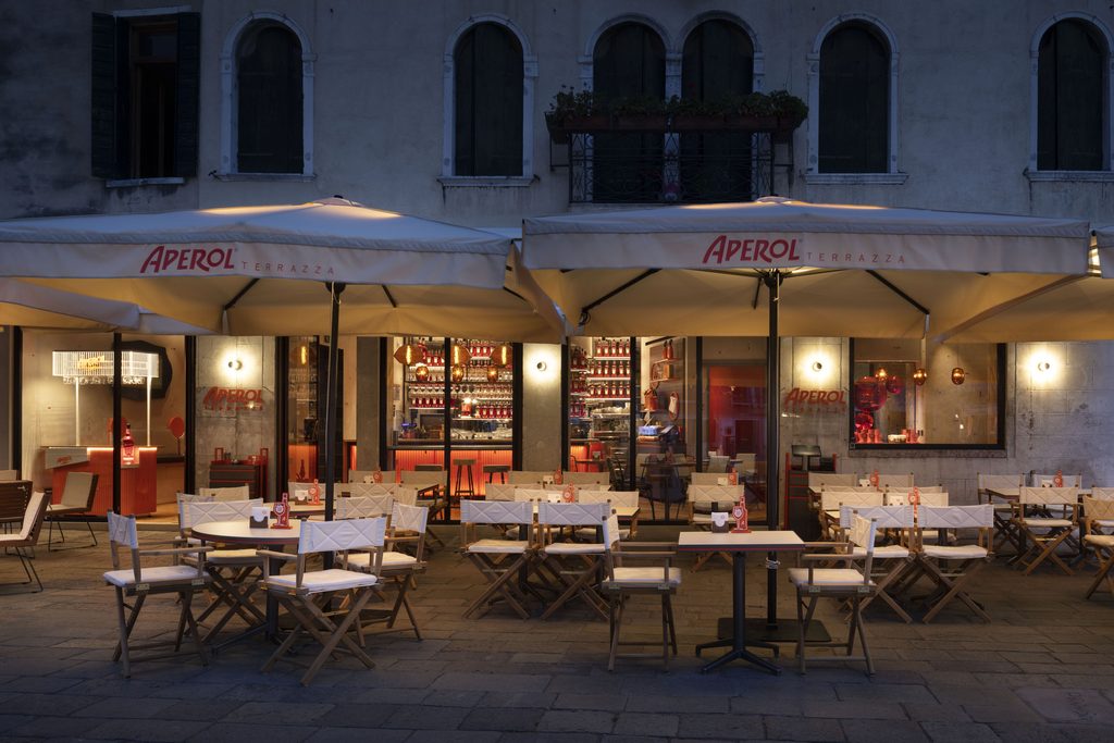 Che siate reduci da una seduta di shopping compulsivo nelle migliori boutique, da una rassegna di film d’artista al teatrino, da una traviata alla Fenice, da un concerto al teatro Goldoni, non rimane che tuffarsi ancora nella nuova Terrazza Aperol. Si tratta di uno dei primi locali che ha scelto di scommettere ancora su Venezia, dopo l’annus horribilis della pandemia. Il nuovissimo locale di campo Santo Stefano è adatto per il post, ma anche per il pre: nel menu si trova anche l’immancabile “baccalà mantecato”, 100% Venezia, e qualche chicca, come il carpaccio di ricciola con crema di avocado e capperi, i maccheroni con le seppie “in tecia” e i moscardini in umido.
