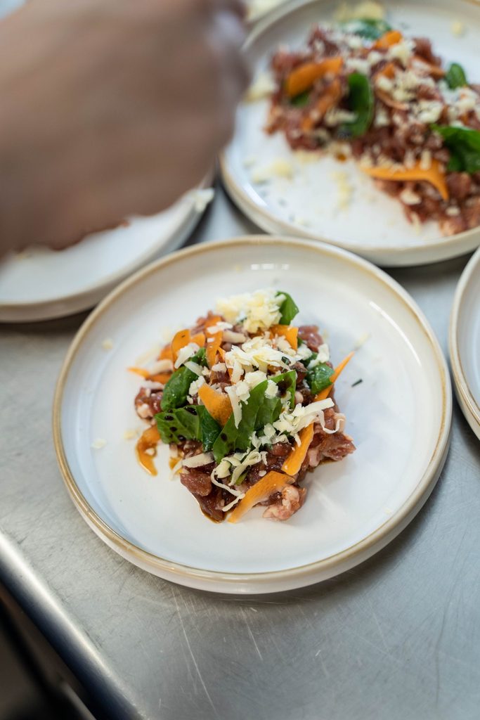 Aperto nel giugno del 2021 in quella che da fuori potrebbe sembrare un’officina (e lì infatti c’era il noto Officina del Gusto), Posto Ristoro nasce in realtà gradualmente nelle innumerevoli esperienze di Nora, partita giovanissima nel 2005 da Amerigo in sala, poi – durante gli anni del Dams – passata dal Caminetto d’Oro, il Ristorante Leoni, Camera a Sud e anche Stefino, fino a Londra e di nuovo in città, stavolta in cucina da Fadiga e Il Rovescio, con una breve parentesi di street food al mercato di Campi Aperti del Vag61.