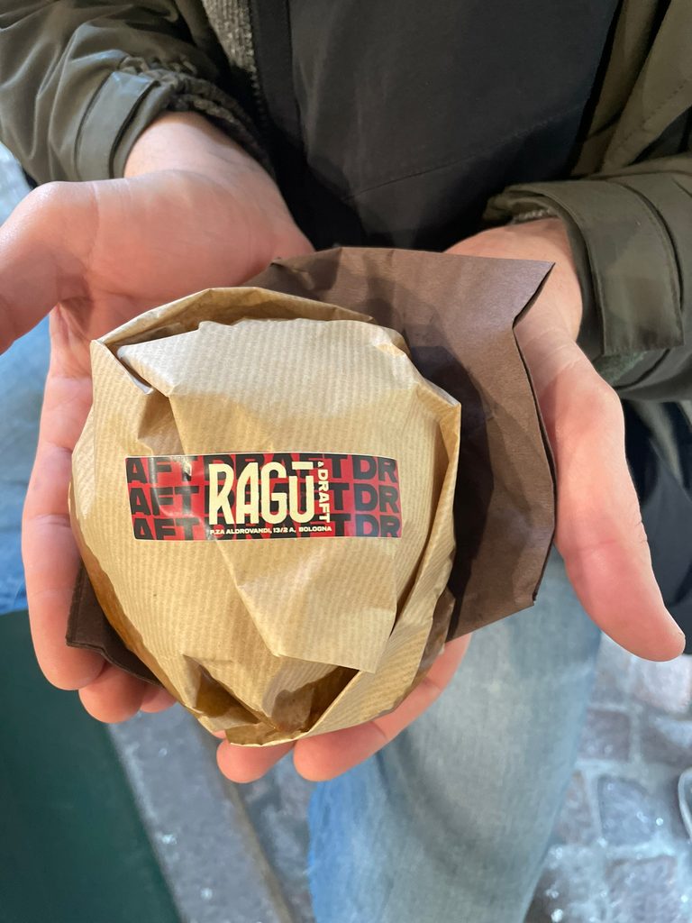 Tra i baracchini di Piazza Aldrovandi c’è anche Ragū & Draft, chiosco che mette insieme la cucina di Ragū di via Goito con i cocktail di Ruggine. Quindi cibo tradizionale d’asporto (ma si può mangiare anche sui pochi tavolini presenti lì), street food che strizza l’occhio alla tradizione bolognese e draft cocktail, ovvero drink artigianali serviti alla spina.
