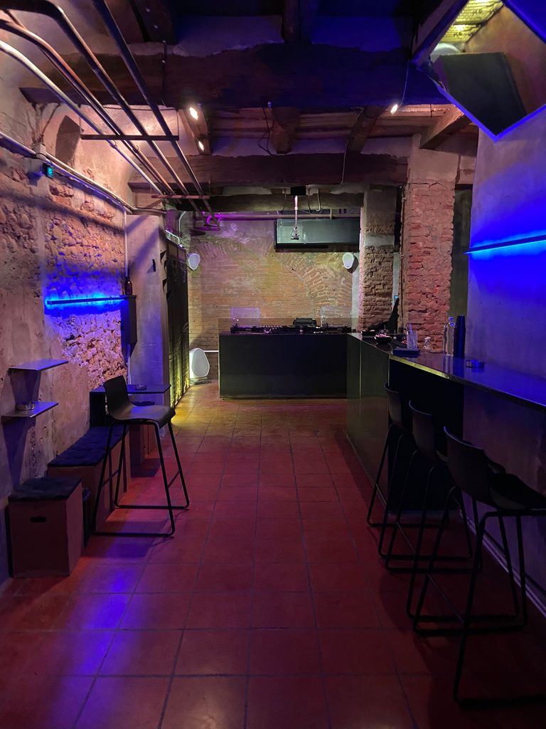 L’ingresso è gratuito con tessera Aics e dopo aver suonato il campanello si accede a uno spazio di un centinaio di metri quadri divisi in due ambienti: uno a piano terra dedicato alle esposizioni d’arte, i corsi, gli incontri e le presentazioni di libri; l’altro nel piano interrato, una sala d’ascolto con volumi limitati per una quarantina di persone – e un angolo di somministrazione – dove avvengono le registrazioni audio e video dei set che si susseguono senza sosta dal martedì al sabato e talvolta nei brunch elettronici domenicali (uno/due al mese).