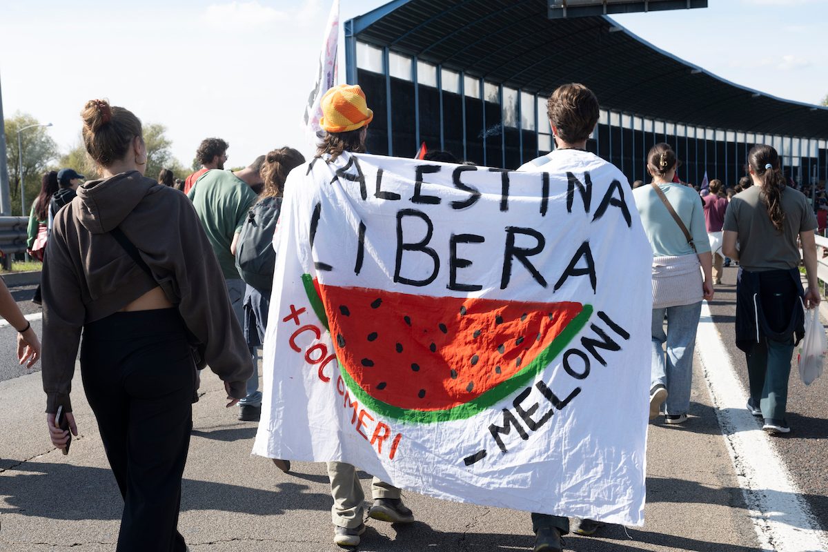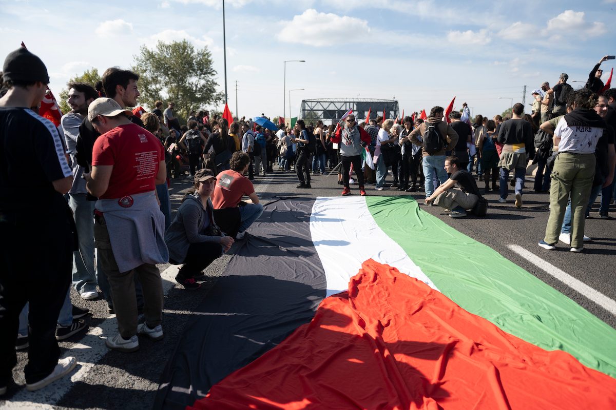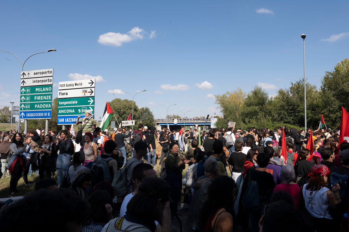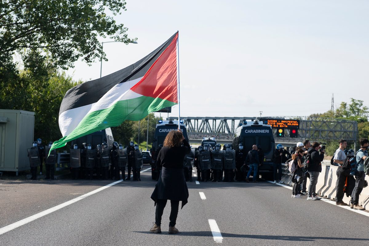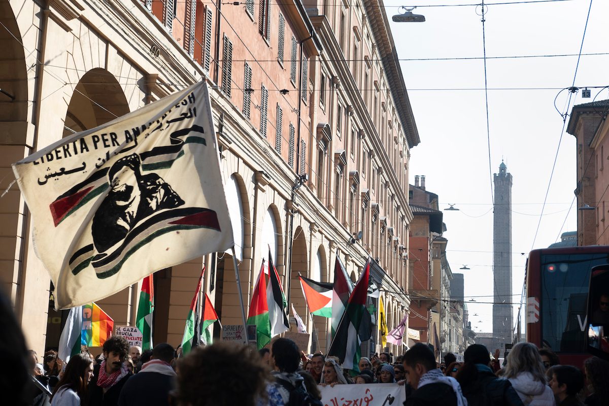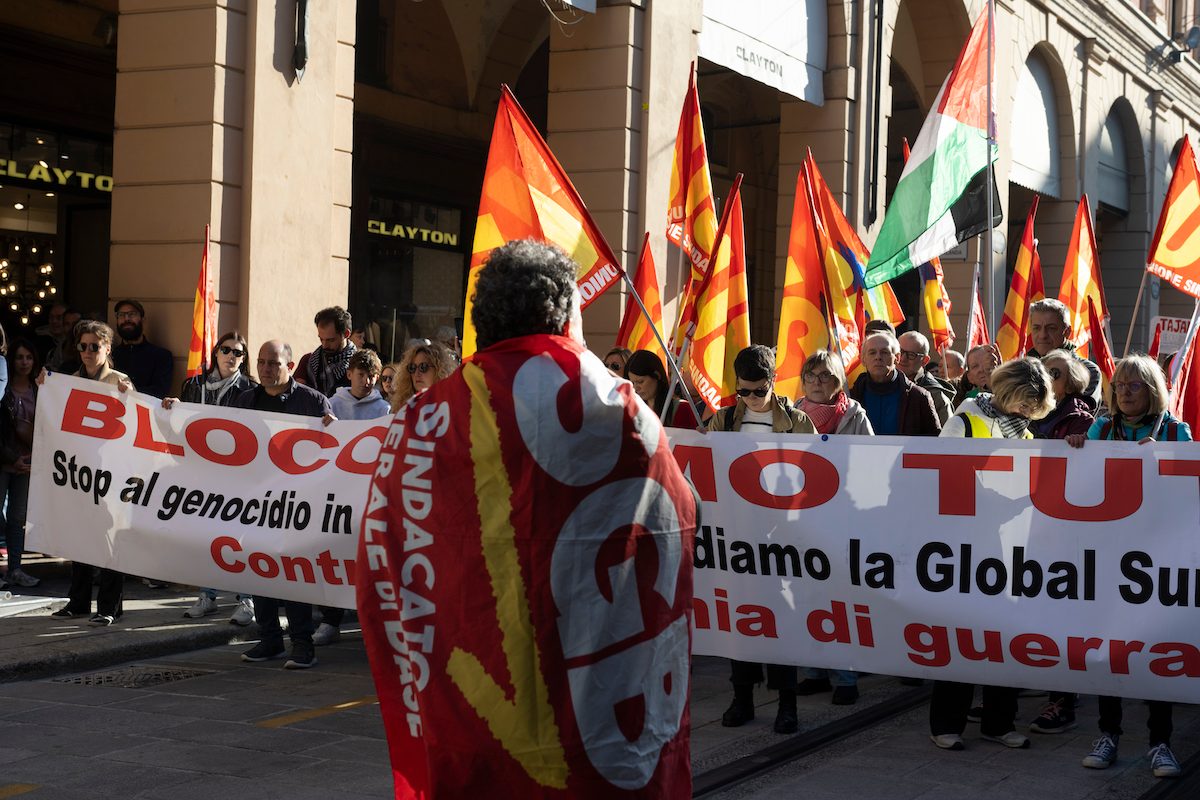 Più di 100 mila persone hanno attraversato ieri, venerdì 3 ottobre 2025, Bologna per lo sciopero generale indetto dai sindacati di base e dalla CGIL. Un numero impressionante, più che raddoppiato rispetto a quello di lunedì 22 settembre scorso, accanto ai quasi 2 milioni di italiani che si sono mobilitati su tutto il territorio nazionale in risposta al blocco della Global Sumud Flotilla in acque internazionali da parte dell’esercito israeliano e per protestare ancora una volta contro il genocidio in corso a Gaza.