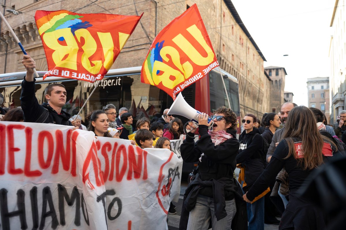 La manifestazione è partita da Piazza Maggiore nelle prime ore della mattina e ha subito assunto un carattere dirompente, con un corteo che si è esteso per le vie del centro fino a raggiungere la tangenziale e l’autostrada A14, bloccandola per ben 5 ore. La città si è ritrovata praticamente paralizzata: traffico in tilt, camion spenti in fila, treni fermi, trasporti pubblici quasi inesistenti, università e scuole chiuse e lezioni sospese.