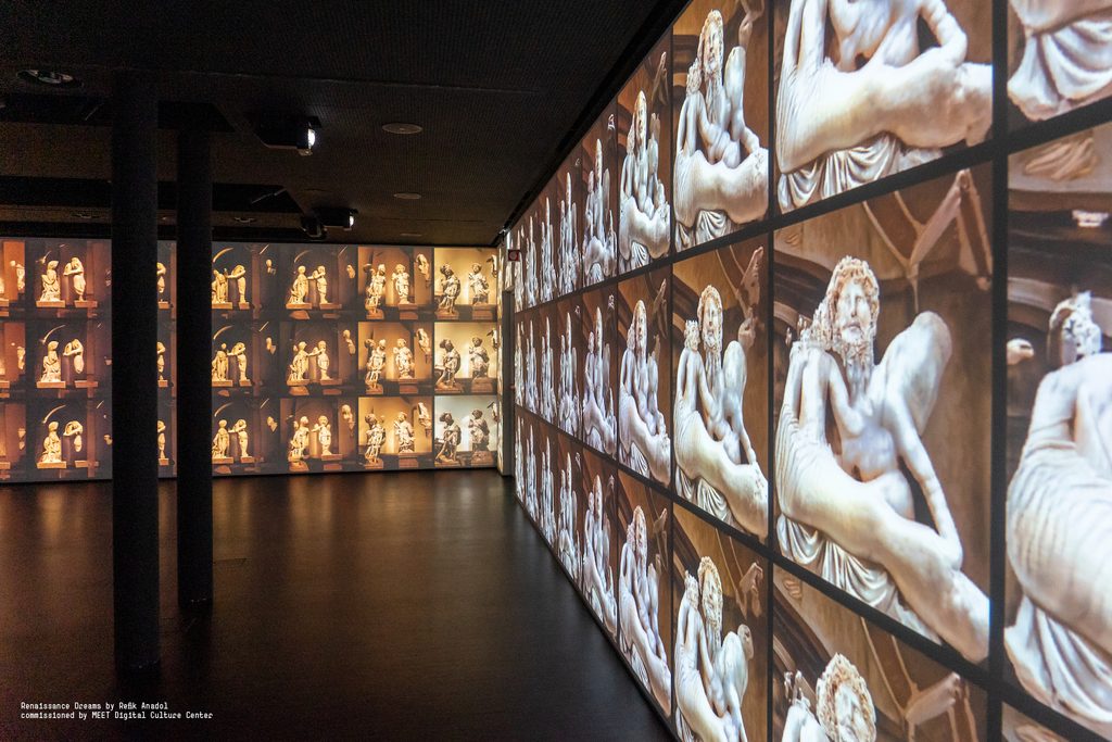 Si parlerà delle contaminazioni tra musica e tecnologia, e proprio perché in fondo la musica è forse l’ambito creativo più poroso e plastico all’innovazione tecnologica, all’uso di algoritmi, al piegamento che fanno gli strumenti e i codici quando vengono a contatto con una pratica compositiva. Sempre lì, al Meet, ci sarà anche l’installazione site-specific Renaissance Dreams del celebre media-artist Refik Anadol. Un lavoro che restituisce la vertiginosa produzione culturale (pittorica, testuale, scultorea e via via) tra il XIV e il XVII secolo in Italia: qualcosa come un milione di immagini in una passeggiata programmata da algoritmi, una promenade virtuale in una storia riletta e tradotta da codici.