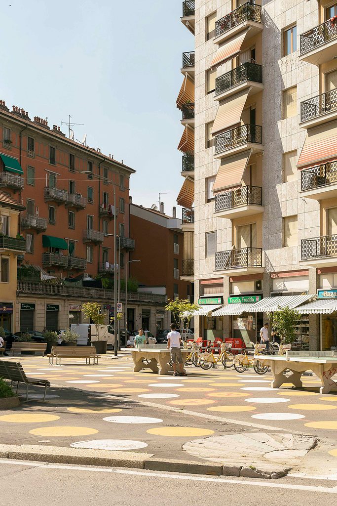 Tornando nel tessuto cittadino, si viene accolti dal saluto del Cristun de cement, un’altra leggenda di quartiere. Qui si trova tutto quello di cui si ha bisogno, qui si svolge la vita in ogni sua espressione quotidiana: dal mercato comunale Ferrara alla piazza “aperta” Angilberto, dalla parrocchia di Santa Rita alla bocciofila, fino al centro polifunzionale (sempre Ferrara). Ogni luogo è caratterizzato dalle sue fiabe e dai suoi novellatori, collocate tutte all’interno della cornice di Corvetto. Come quella di Giulio il fruttivendolo, di Fabrizio e la sua macelleria equina aperta nell’88, di Fulvio il rosticcerie e di Anna la pescivendola, commercianti che con la loro attività mantengono animato il mercato coperto insieme all’iniziativa Made In Corvetto, il primo dei Punti di Comunità de Lacittàintorno. Un progetto, quest’ultimo, basato su modelli innovativi: far coesistere funzioni commerciali legate al cibo con funzioni di natura culturale e aggregativa. Oggi, grazie a questa impresa, due stalli sono dedicati alla Ciclofficina e alla Cucina di Quartiere.