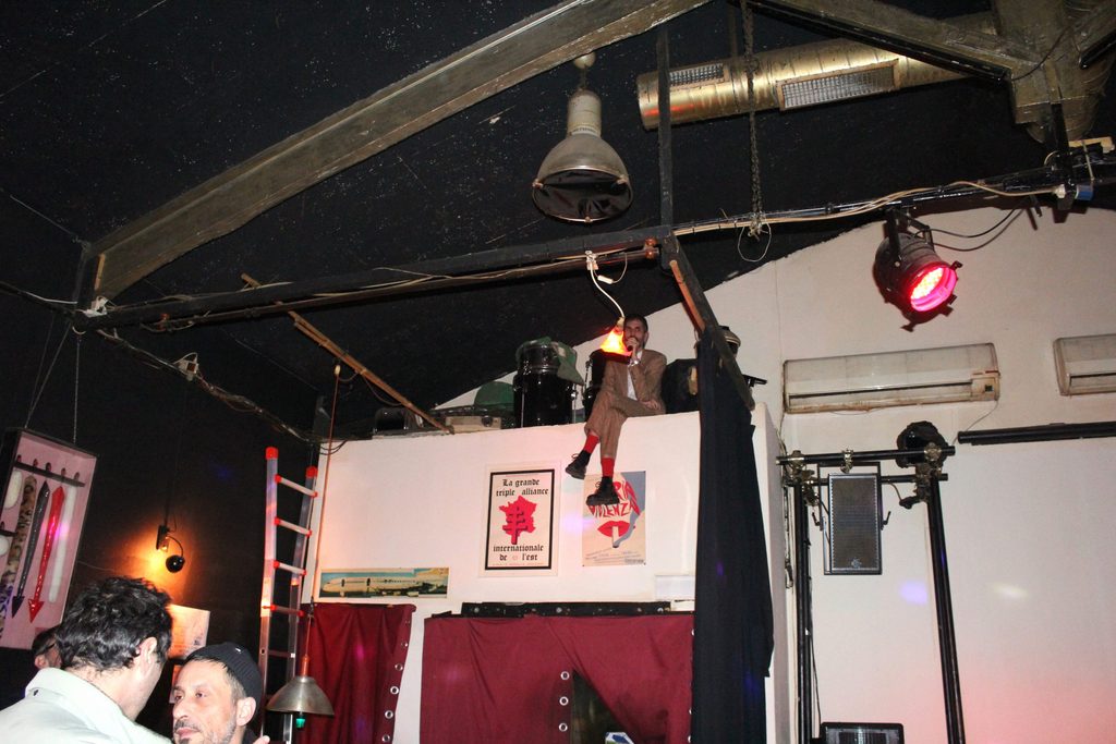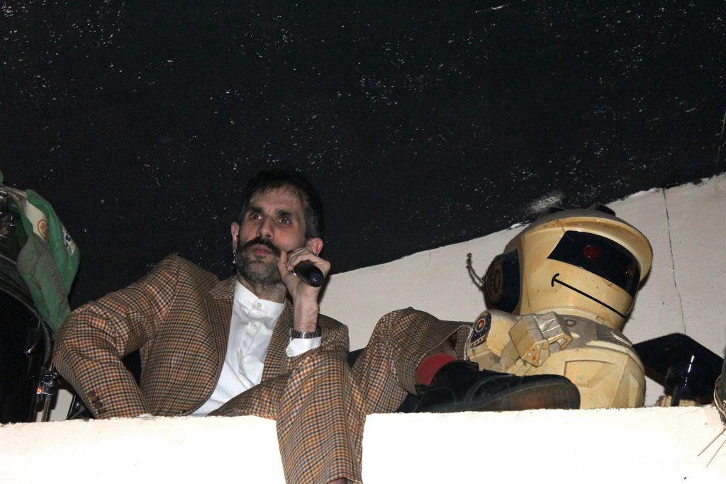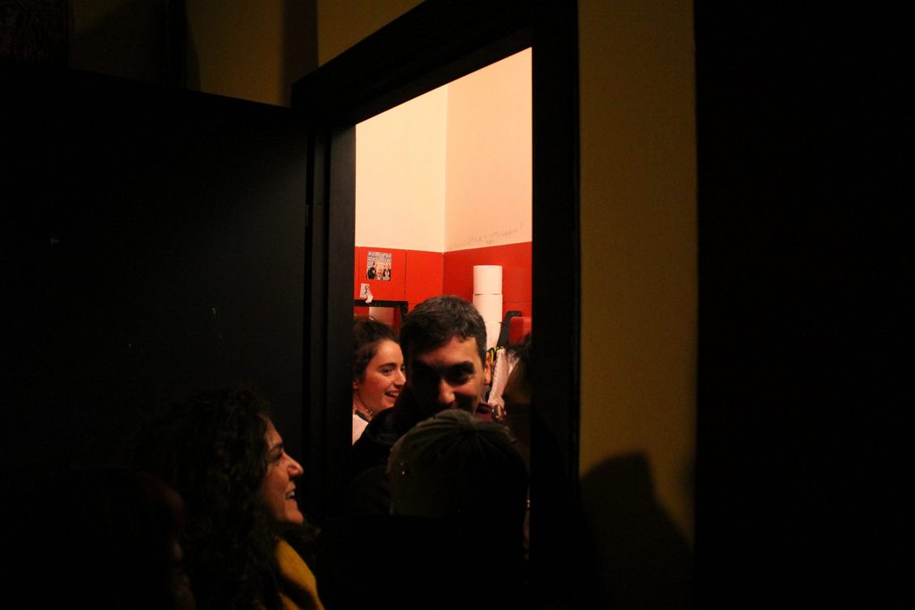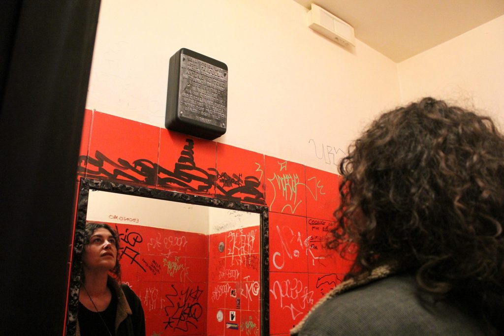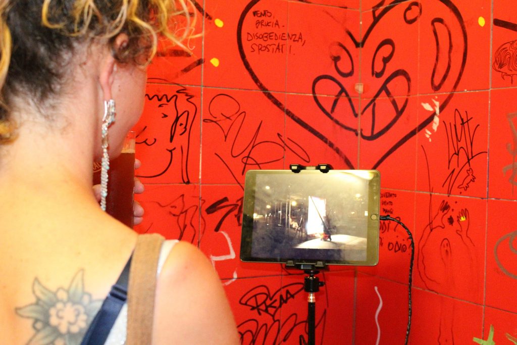 Pierrottismo lunaire: una cassa nel bagno del Fanfulla collegata ad un microfono bluetooth. Io nel punto pù alto possibile del Fanfulla. Quando le persone entrano in bagno, gli parlo.