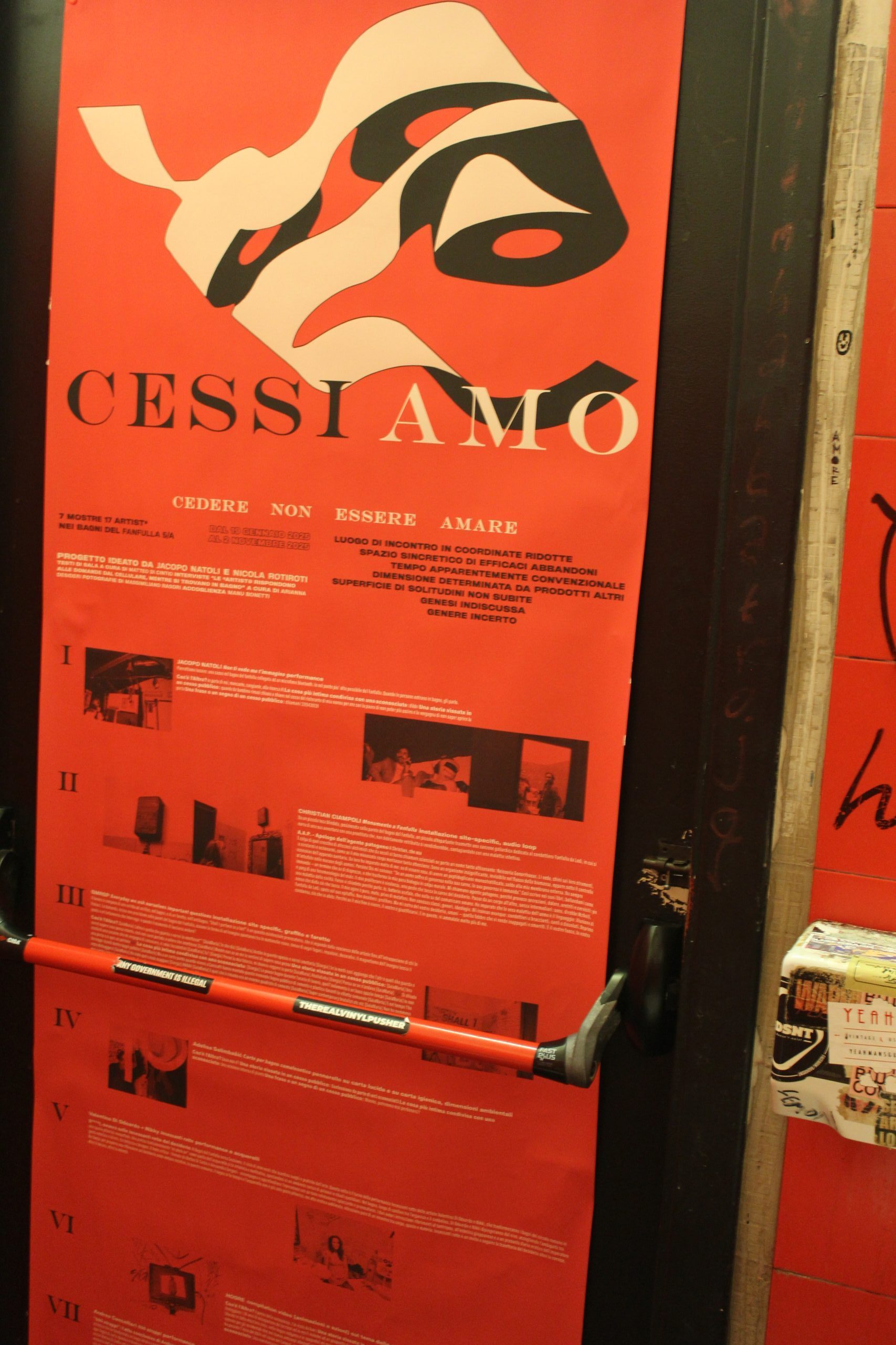 Non solo, da gennaio 2025 i sanitari del circolo Arci di via Fanfulla da Lodi potranno vantarsi anche di aver ospitato un ciclo di mostre d’arte contemporanea e performativa: sette appuntamenti, per diciassette artisti, tutti rigorosamente confinati nel luogo dei bisogni (e dei desideri). A immaginare questo folle esperimento, dal titolo inappuntabile, “Cessiamo – Cedere Non essere Amare”, sono stati Jacopo Natoli e Nicola Rotiroti, protagonisti anche della prima esposizione, rispettivamente con una performance e un autoritratto. Su questa pagina seguiremo per intero questo esperimento, pubblicando di volta in volta opere e pubblico “pisciante”, raccontando i lavori attraverso i testi critici a loro dedicati, fino ad arrivare all’ultimo appuntamento di novembre, quando gli ultimi due interventi di artisti saranno accompagnati dalla presentazione di un poster realizzato da DITO Publishing, che documenterà tutti gli interventi svolti nei mesi passati.