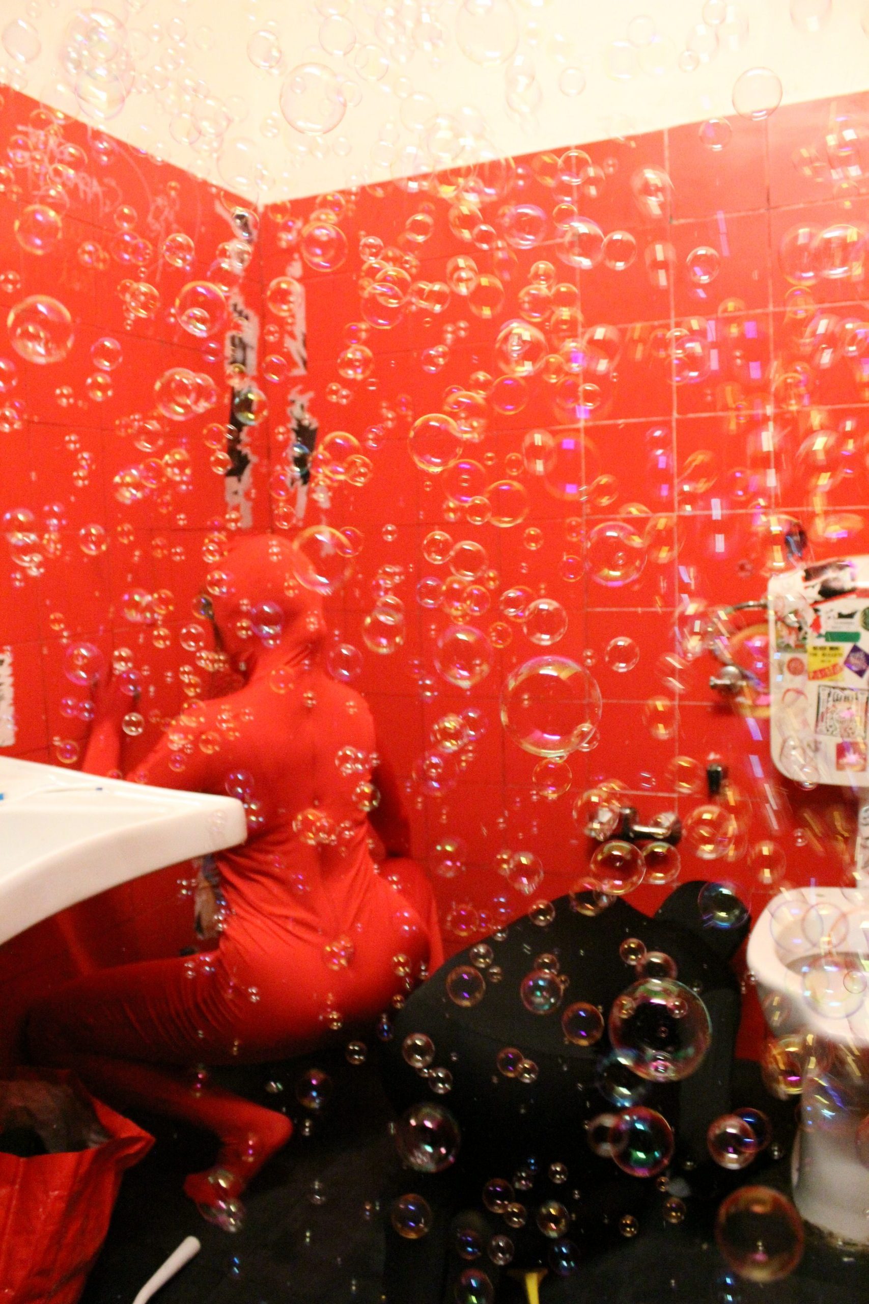 Pierrottismo lunaire: una cassa nel bagno del Fanfulla collegata ad un microfono bluetooth. Io nel punto pù alto possibile del Fanfulla. Quando le persone entrano in bagno, gli parlo.