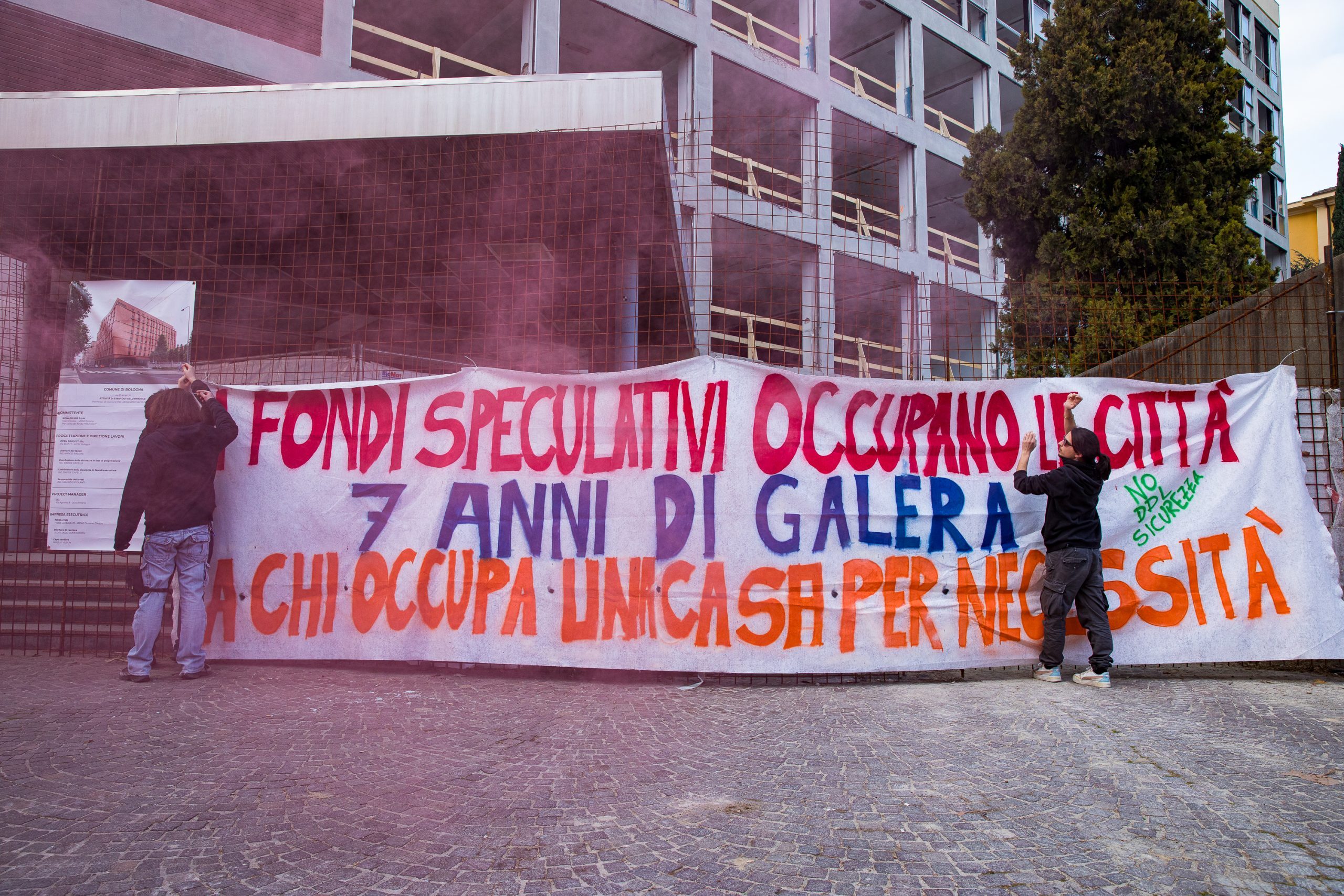 La manifestazione di Bologna ha, inoltre, toccato anche alcune questioni cittadine come anche la crisi abitativa e il diritto alla casa, dedicando un grande striscione allo studentato di lusso che sorgerà in via Gramsci al posto dell’ex Inps con la scritta: “Fondi speculativi le città, 7 anni di galera a chi occupa una casa per necessità“.