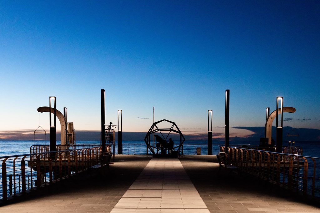 Il primo appuntamento, registrato all’alba, è all’estremità del Pontile Bestoso di Alassio (SV). In questo non-luogo al confine fra acqua e cielo si esibirà, in un piano-solo show, un artista dall’anima pop ma anche soul, jazz ed elettronica tra i più apprezzati negli ultimi anni in Italia. Tra il mare e i suoi caruggi, non tutti sanno che Alassio, negli Anni 50 e 60, fu una delle mete predilette di attori e registi internazionali del movimento Beat che qui trovavano un’oasi di divertimento, stile e anche trasgressione.