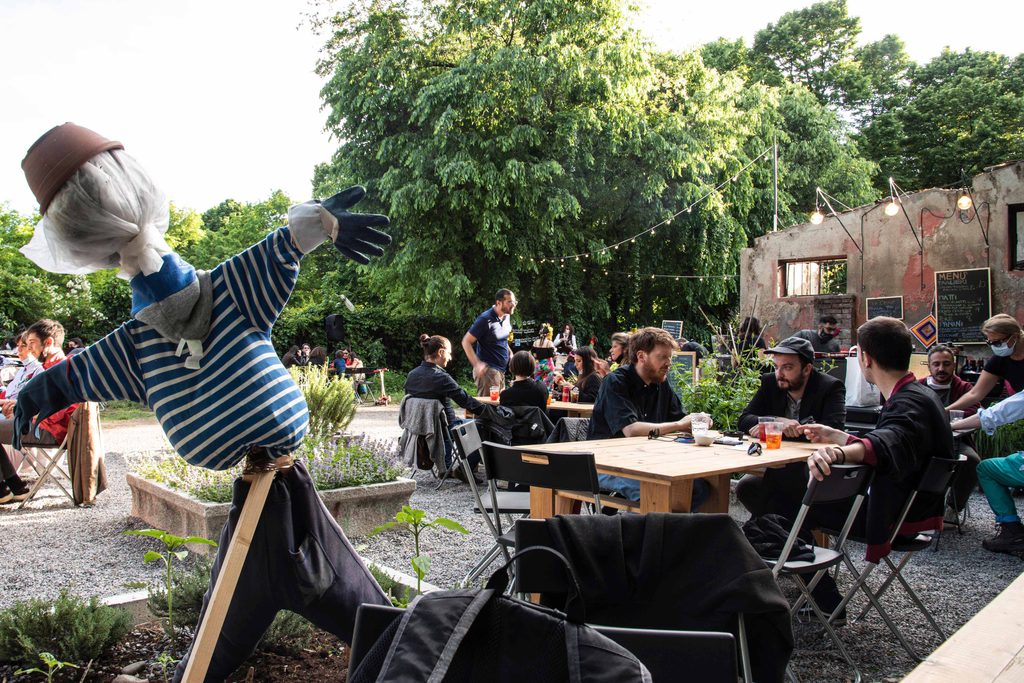 Seduti ai tavoli di fronte al bar con il profumo di citronella, un tagliere maestoso e delle birre artigianali, mentre altri volontari preparano la proiezione della serata, Gina ci dice che Nuovo Armenia è uno spazio ibrido. C’è il bar e il cinema, i concerti e gli incontri, si fa cucina e c’è la scuola di lingue dell’associazione Asnada, si fa co-working e si organizzano le brigate solidali, insomma, si fanno attività che traducono le relazioni di cui il quartiere in sostanza vive.